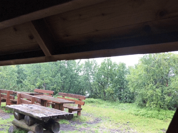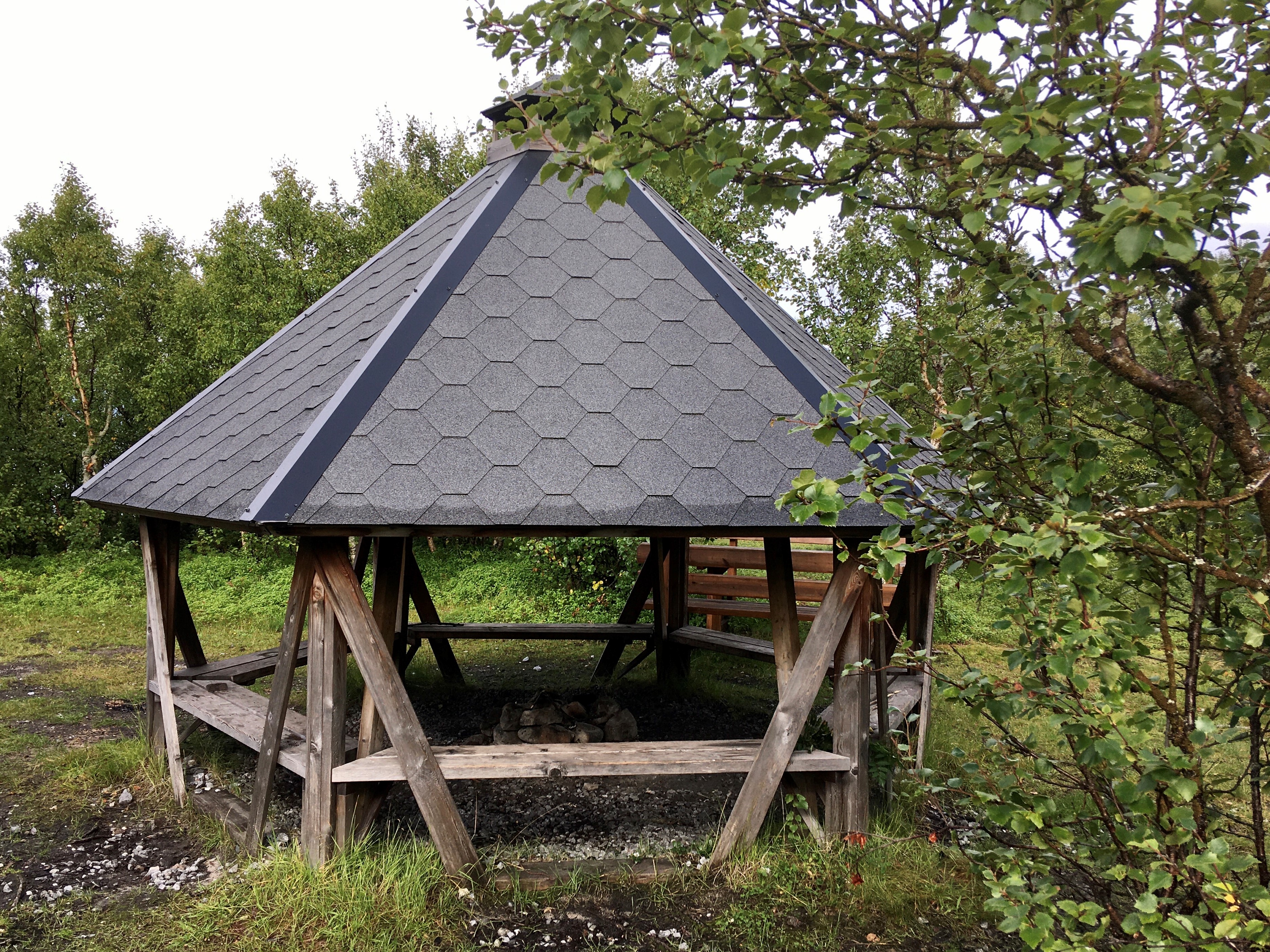 Being outdoors is a very important part of Norwegian life. There’s a definite sense that one should not be put off by the weather. But that goes hand in hand with an acceptance that the weather exists and though many of its effects can be offset by the right clothes, sometimes additional protection is needed. The sky overhead was still grey and so I was pleasantly surprised to find that we would actually be lighting our fire inside a little shelter.