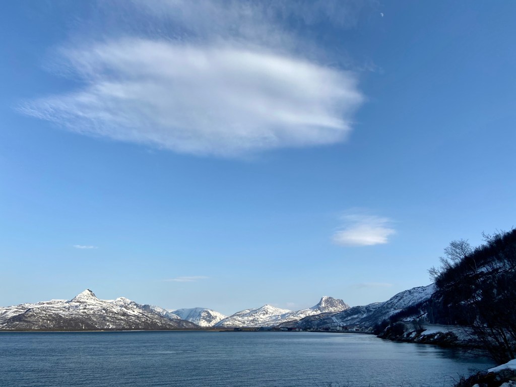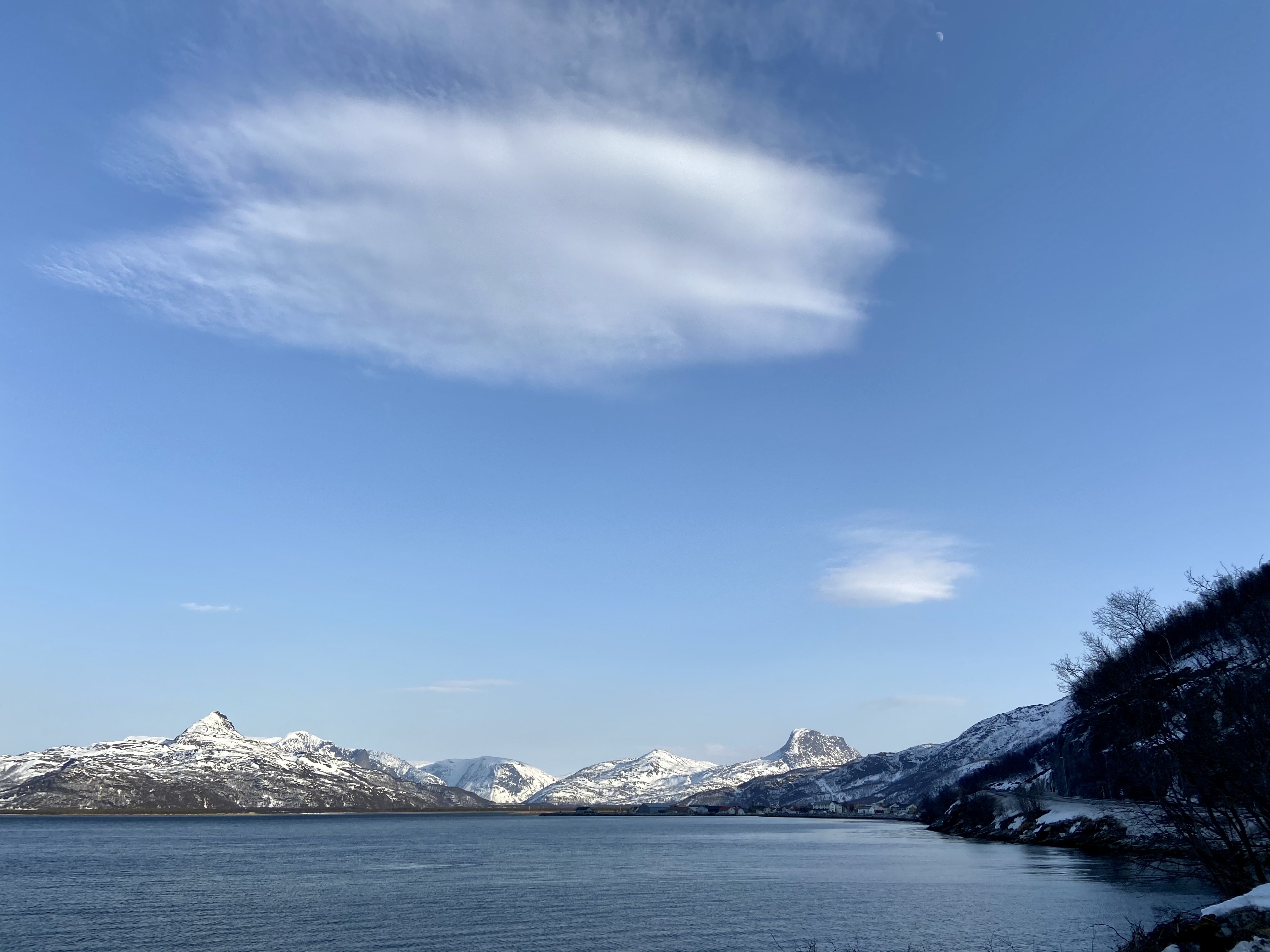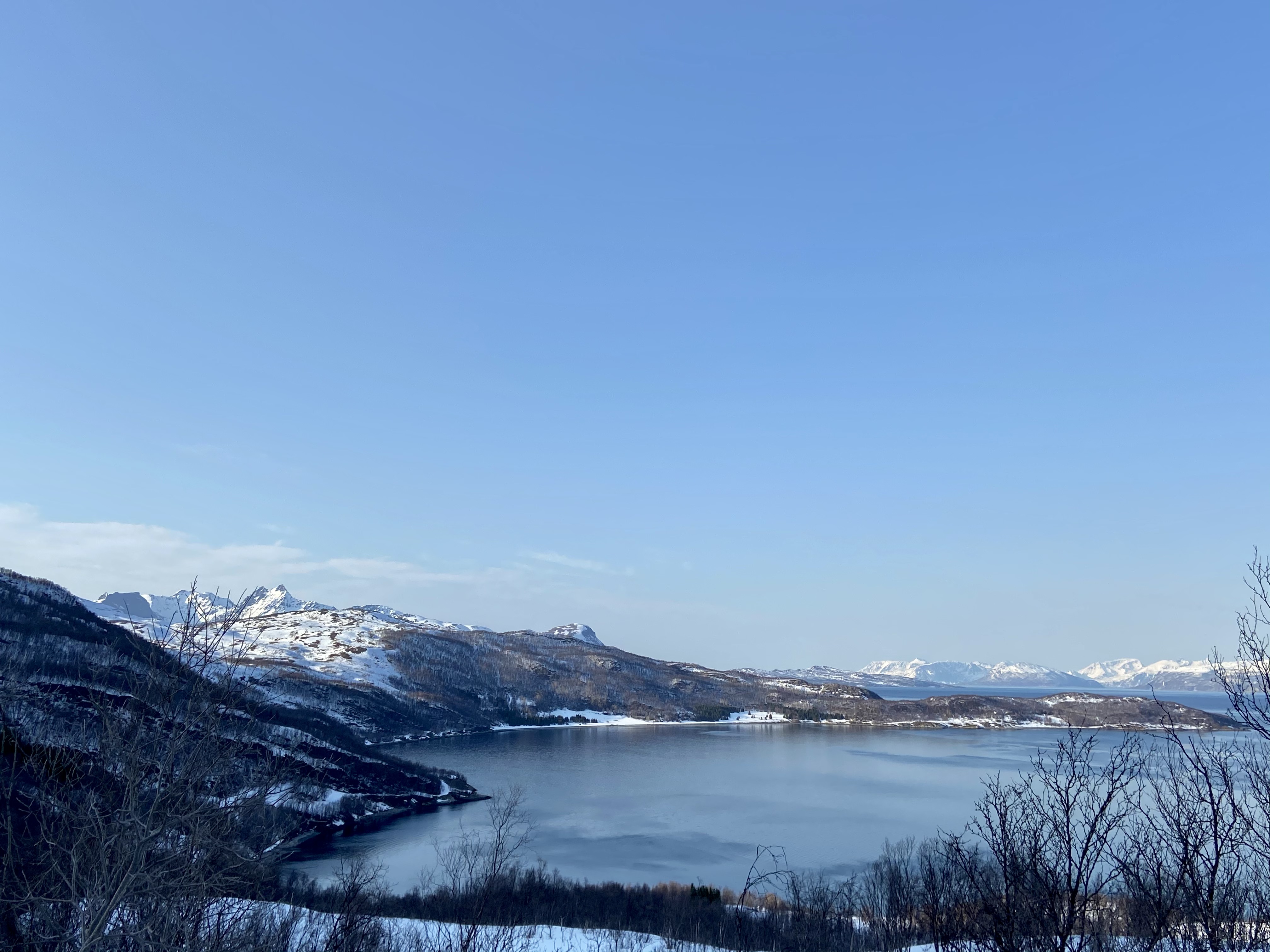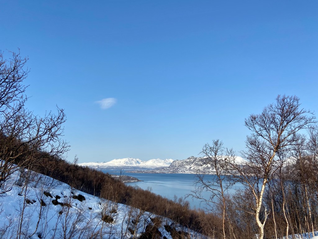 Further down the road, there were beautiful views across Reisafjord to the mountains beyond.