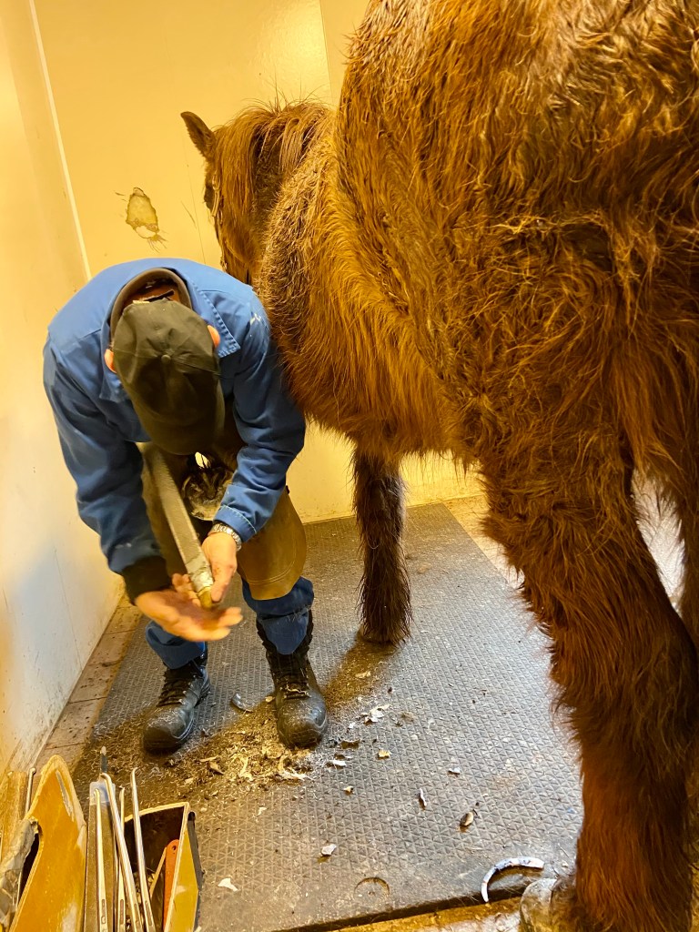 Birgit has a small herd of Lyngshest that she and her partner use for breeding and riding. She tells me that once a week, a group of local pensioners come and ride out with her partner, Geirmund. I have often thought Norway is a good place to grow old (often the ski slopes are free for over 70s) and this sounds like one more wonderful discovery of active retirement. She led me into the barn where we found the farrier working.
