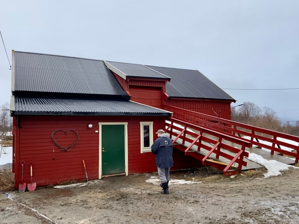 Wednesday night was quite the contrast. As Birgit had warned me on Tuesday, the weather closed in and by Wednesday evening the skies were heavy and there was snow in the air. Birgit had invited me to eat with her at home and so after work, I followed her on the road that led north from Storslett and out to her house.