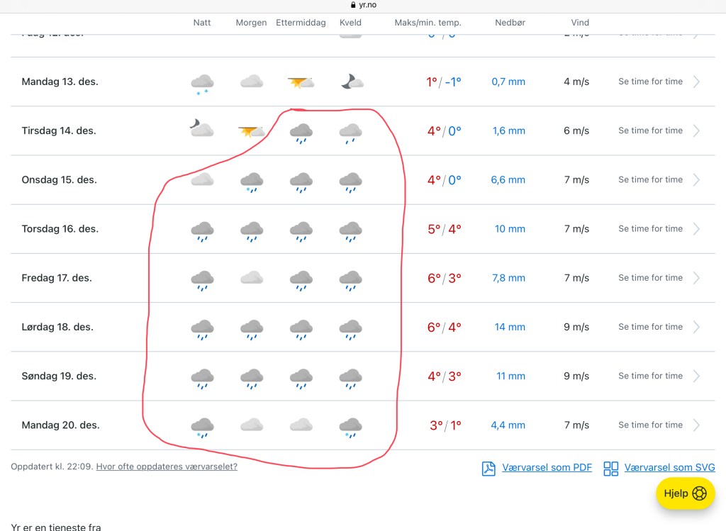 But then another day of forecasted rain appeared and another. The temperature was higher too. This was the screenshot I sent to Anna last Sunday.
