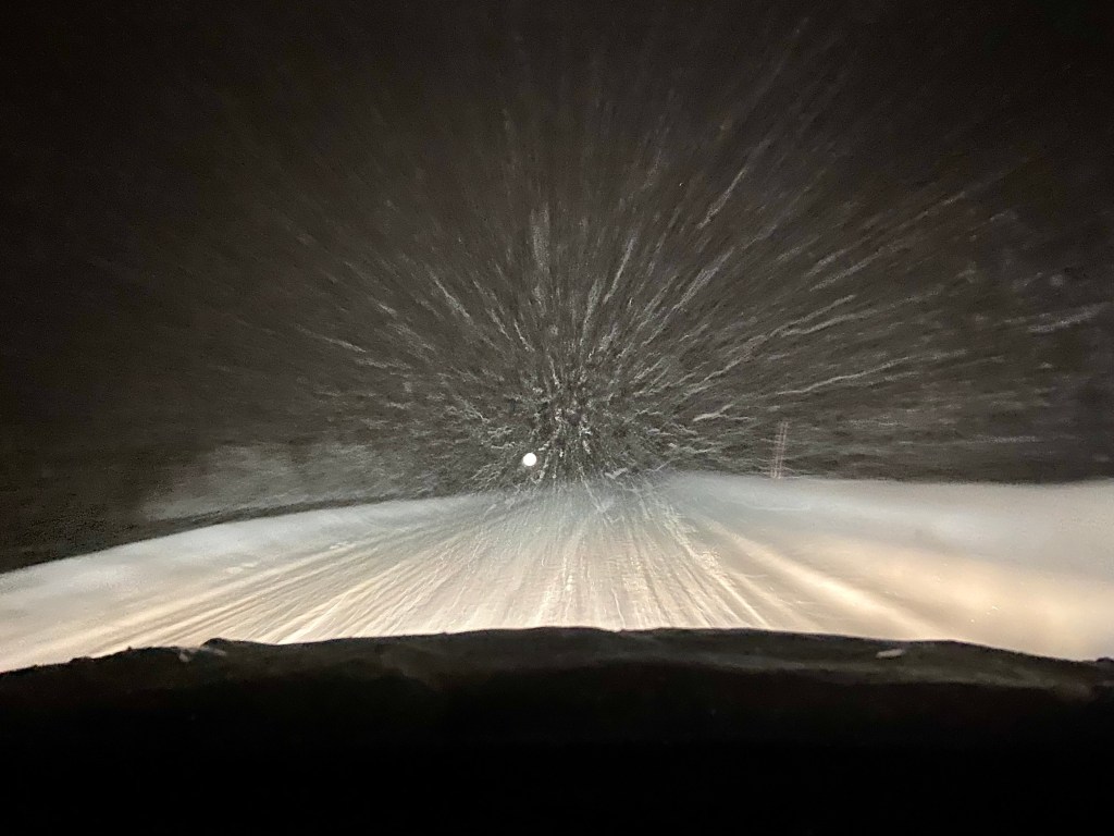 It wasn’t an easy drive. It snowed most of the way, and there were times when the snow was blowing over the road, taking visibility down to a couple of metres.