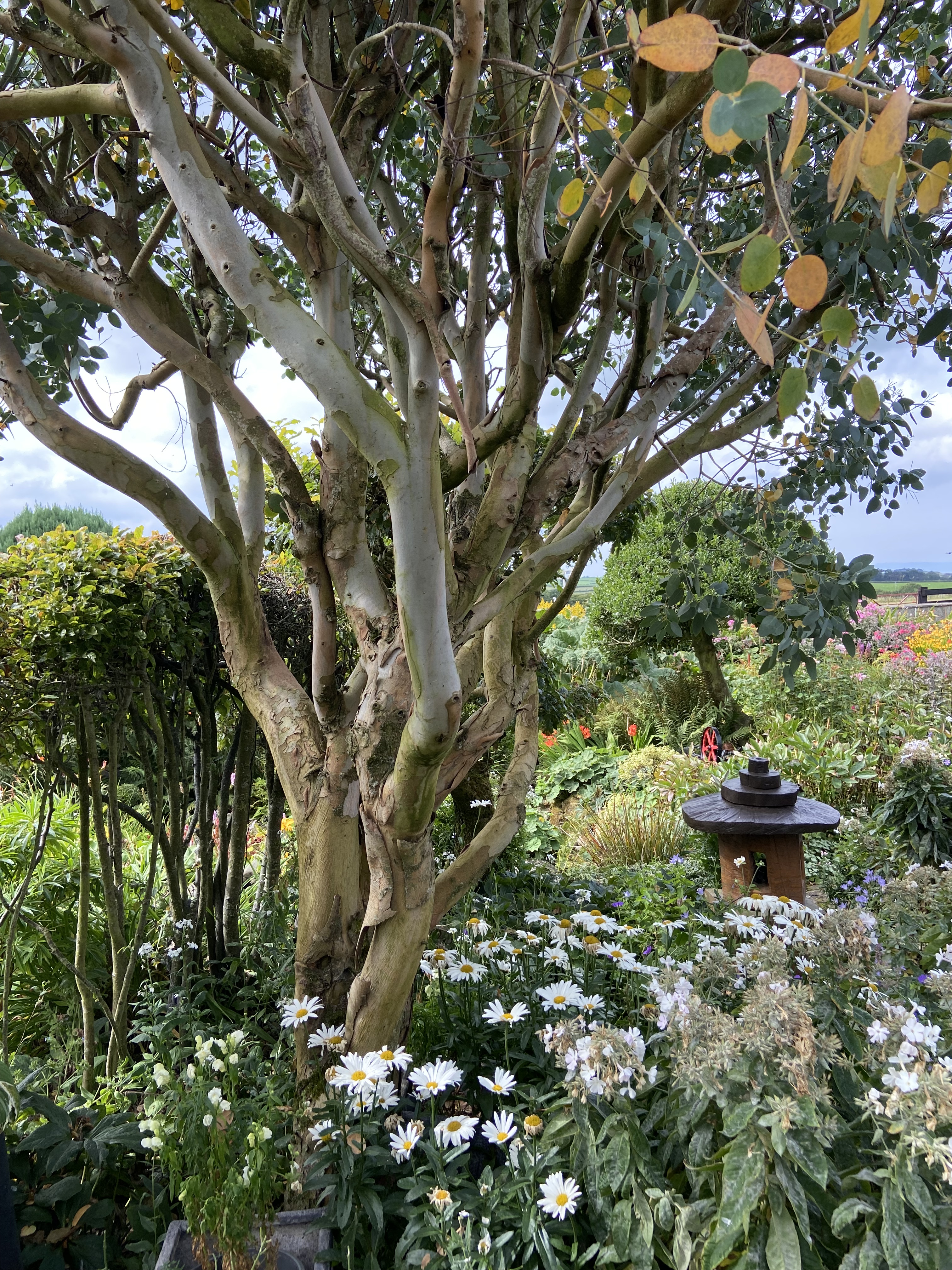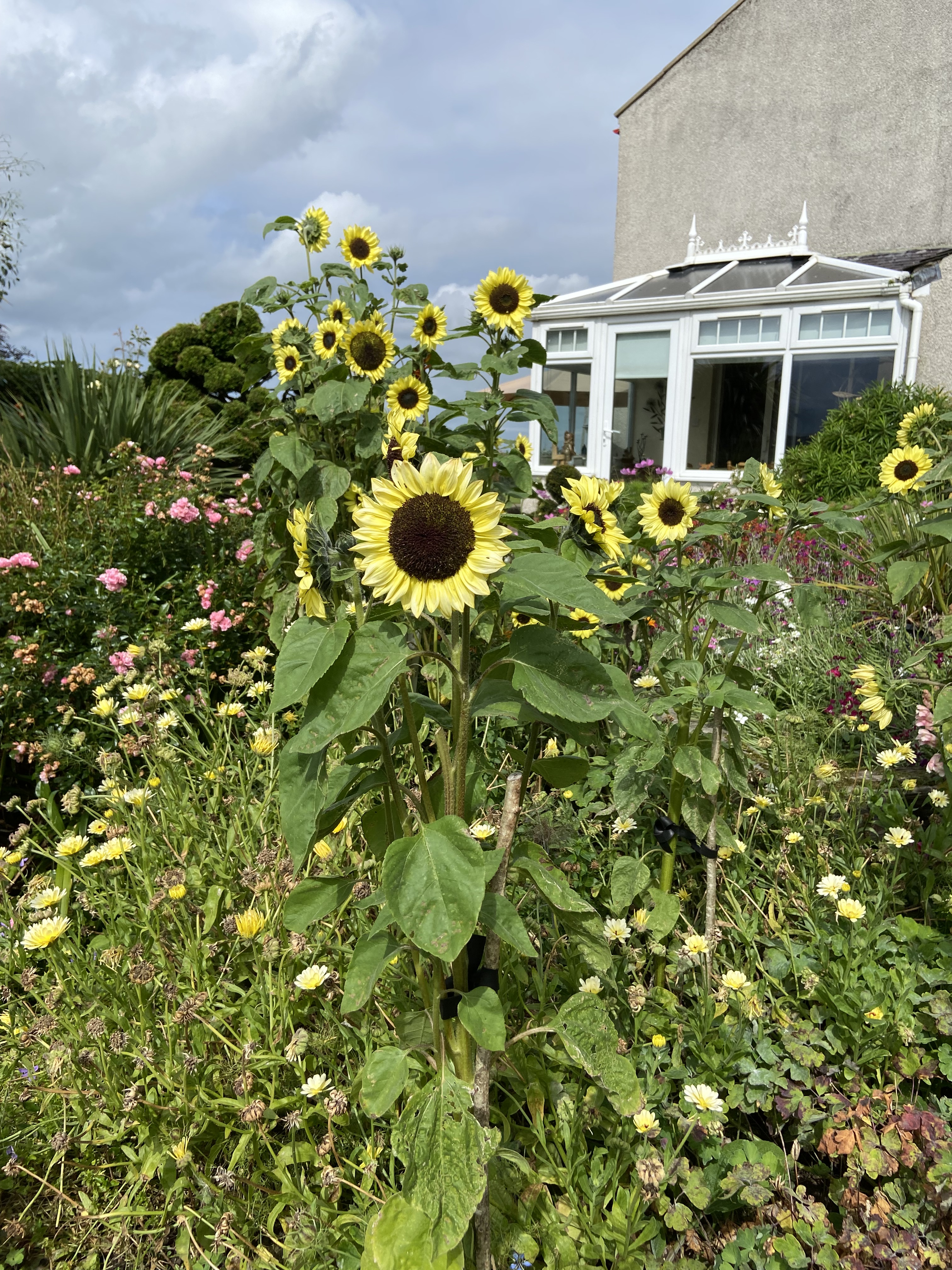 Last weekend, I had a fabulous time visiting Sue at her home and then visiting the gardens at Dumfries House together. Dumfries house is, counterintuitively, in Ayrshire and not Dumfries and Galloway. Sue volunteered there, in the garden, a while back and pointed out a few huge bushes she had planted. Gardening has obviously been a lifelong passion. She wants to help me get my garden in shape. I have let it run wild this summer and finally started cutting the lawn this week. Unfortunately I didn’t get it all done in one go and the rain came after two exhausting sessions, so now I have one half yellow-brown lawn, one half hay field. I will get there…