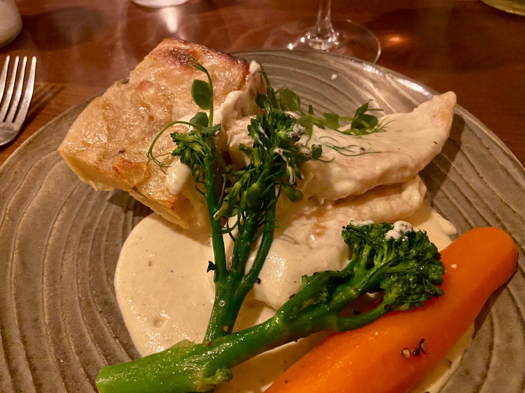 Then I had chicken breast in a Parmesan sauce. This did have an Italian name, but I was a glass of wine in by this point, so I failed to note it down! I left most of the carrot for Rudolph, but the rest was delicious.