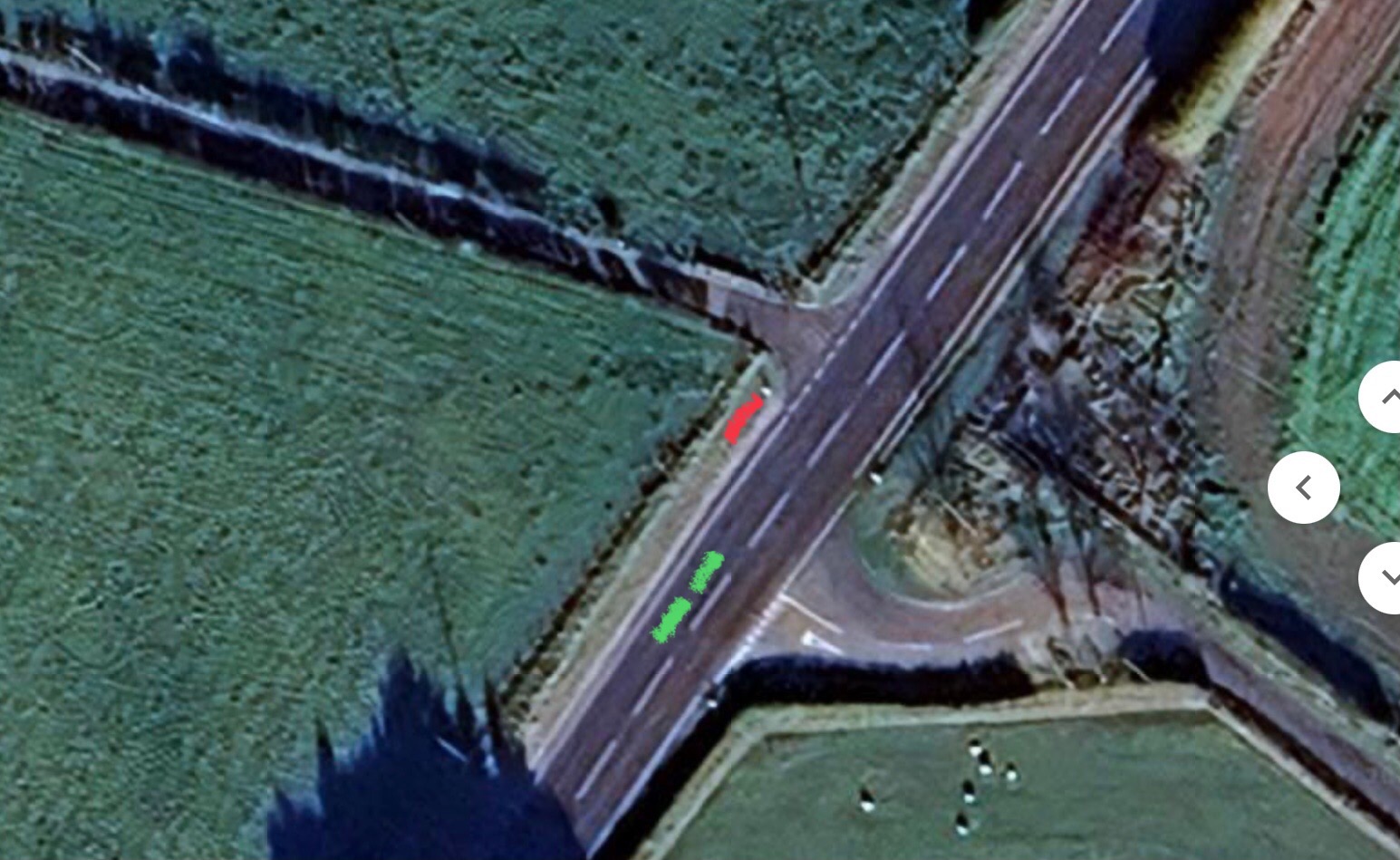 I looked it up on street view this morning, then transferred over to satellite and this is what I saw. The two green stripes are where I believe the taxi and I were waiting. The red stripe is where the red car stopped. Life is fragile, is it not?