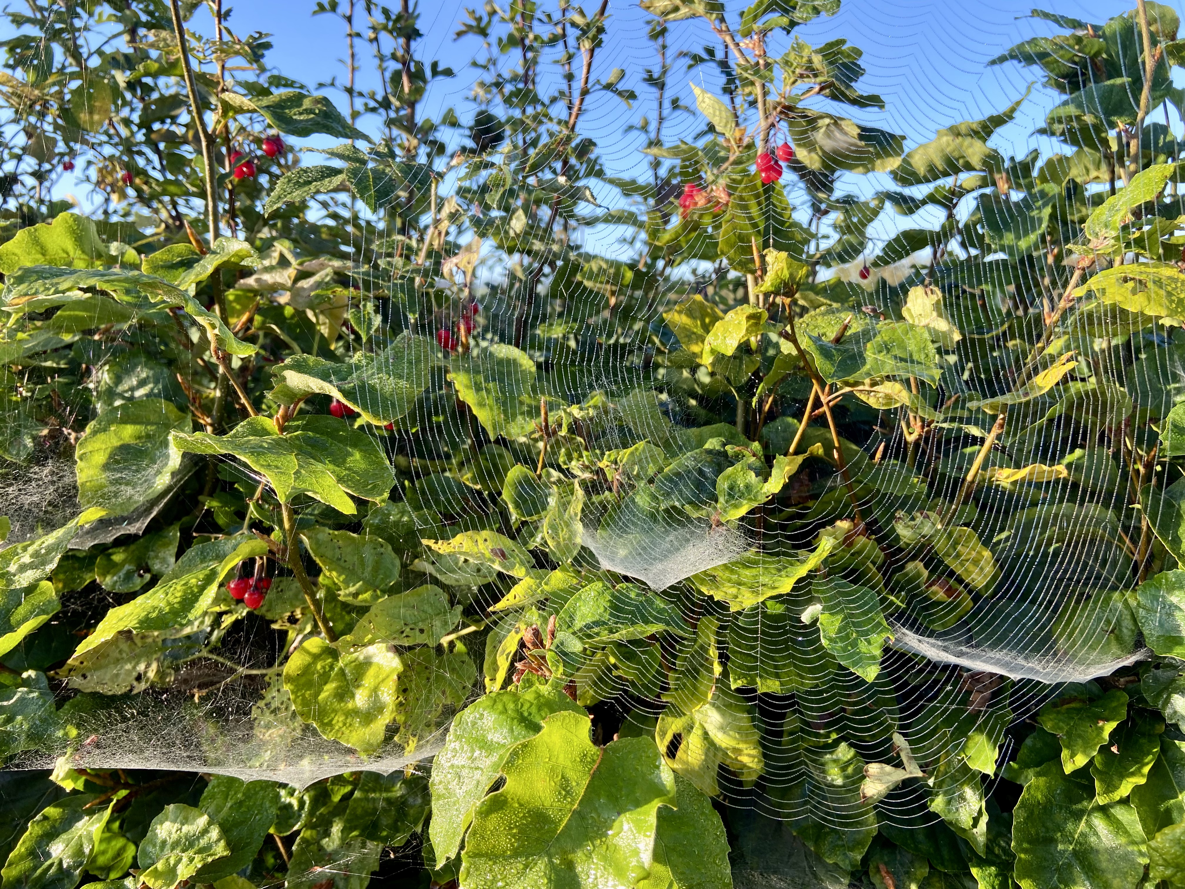 Autumn has really set in now. Unsurprising as we are at the end of September. I don’t know where the year has gone. This week has seen a return to blue skies and I have been enjoying Blackbird Lane with its changing colours and ever-shifting hedgerows. Yesterday morning was particularly wonderful. The sun, low in the sky, lit up the dew drops bedecking thousands of spider webs. Normally invisible, they stood out against the leafy backdrop. There are berries everywhere too and the sun shone on those too, so bright and cheerful. Hope you enjoy the pictures I took, even though they don’t do it justice. You’ll have to imagine the gentle warmth of the sun, the chill air on my cheeks and the earthy scent of autumn, that hung in the air with the birdsong.