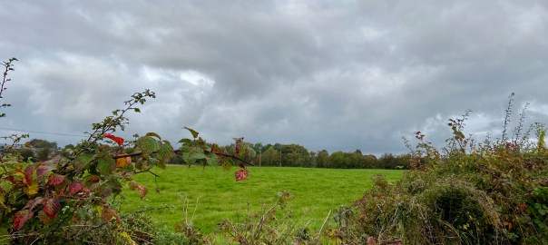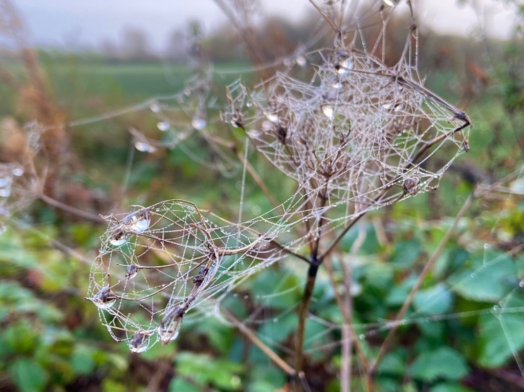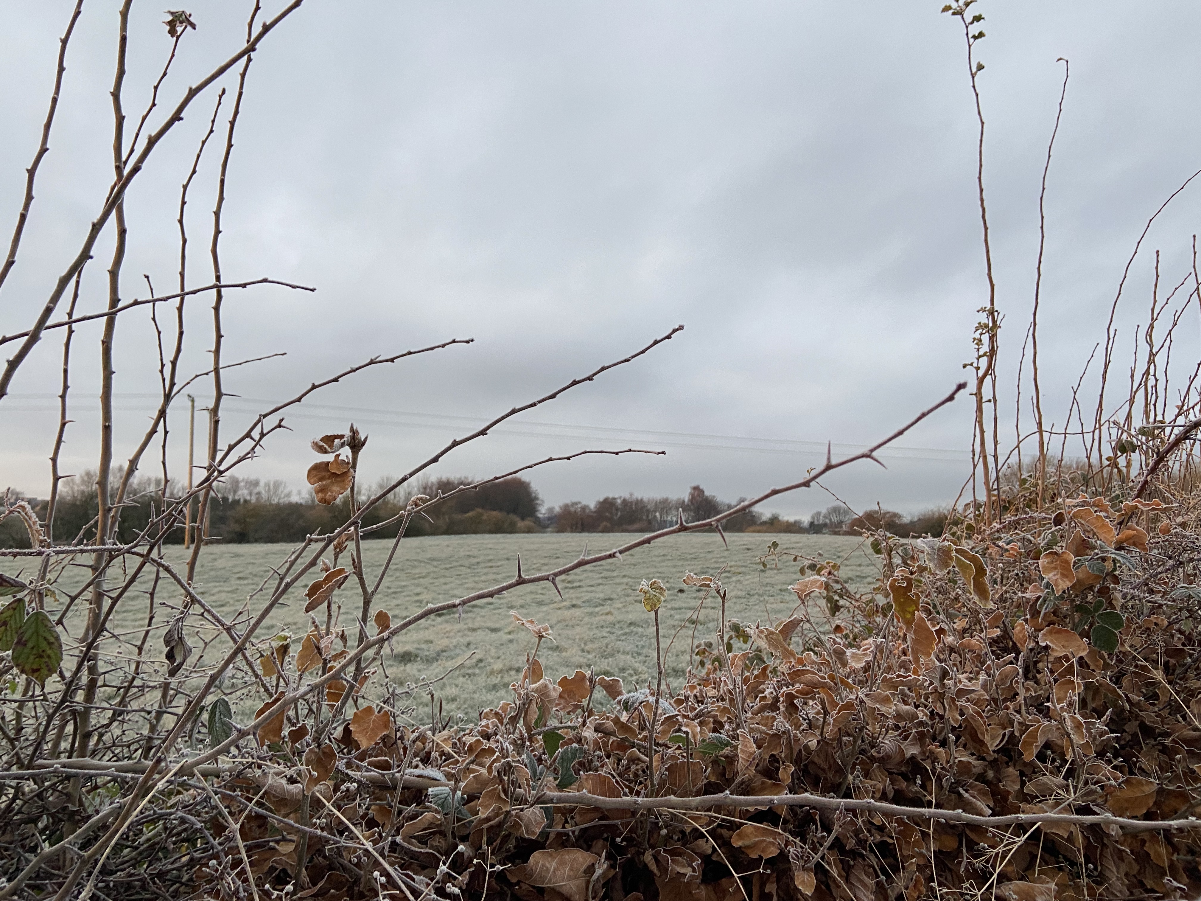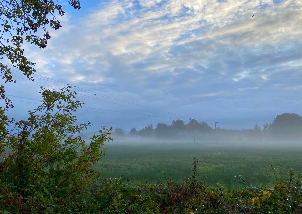The early part of the week was sunny, with misty mornings. I took some photos from Blackbird Lane as I love the effect, with white haze hanging over the dewy grass and shining drops glistening in the low-slung sun.
