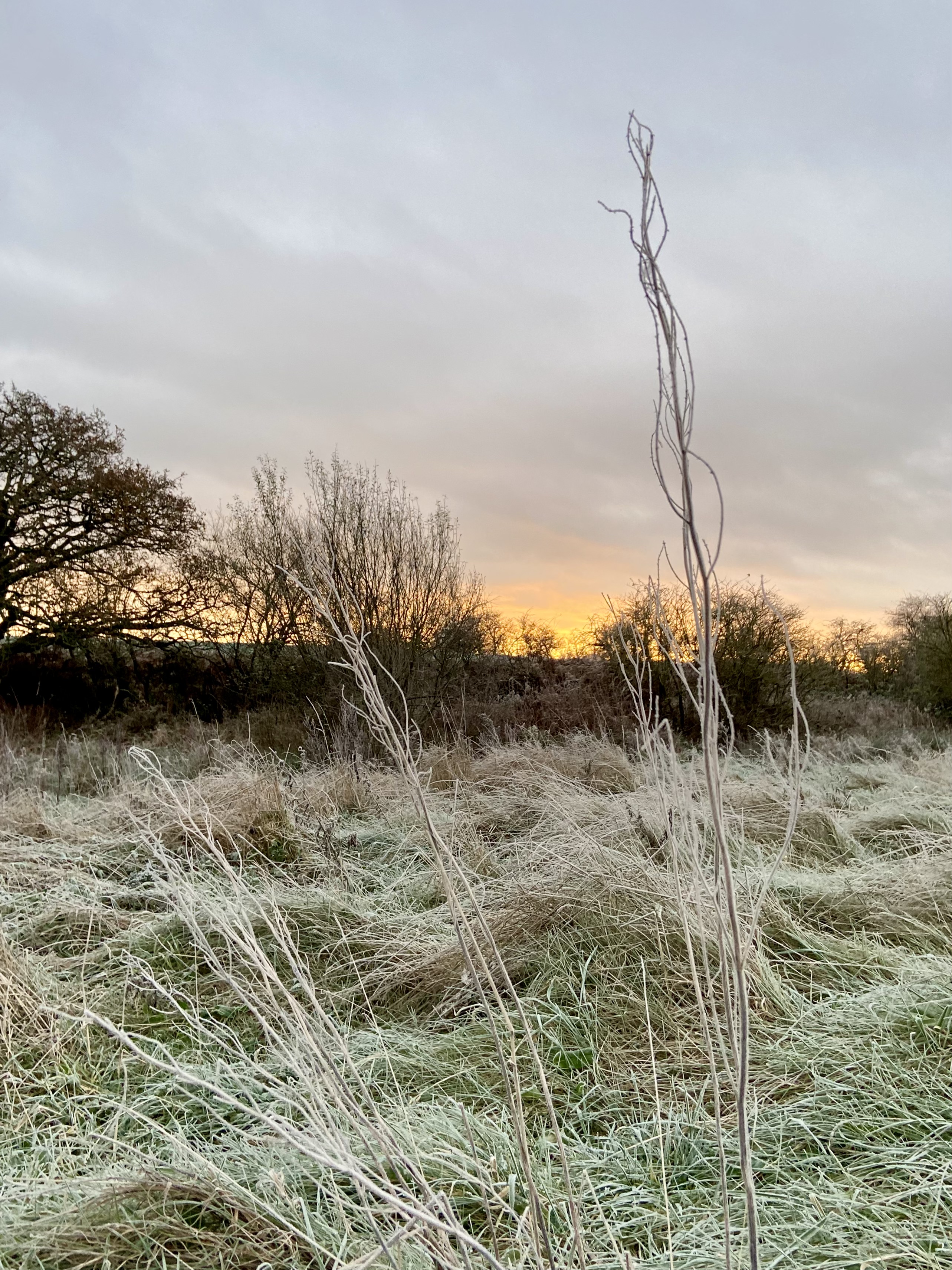 Then of course, the revelation that it wasn’t a selfie per se, rather a thank you for an appreciated gift, and it all makes sense. She and I were both amused. It was a good start to the morning. I took photos other than my selfie. It was a gorgeous sunrise over the frosty ground.