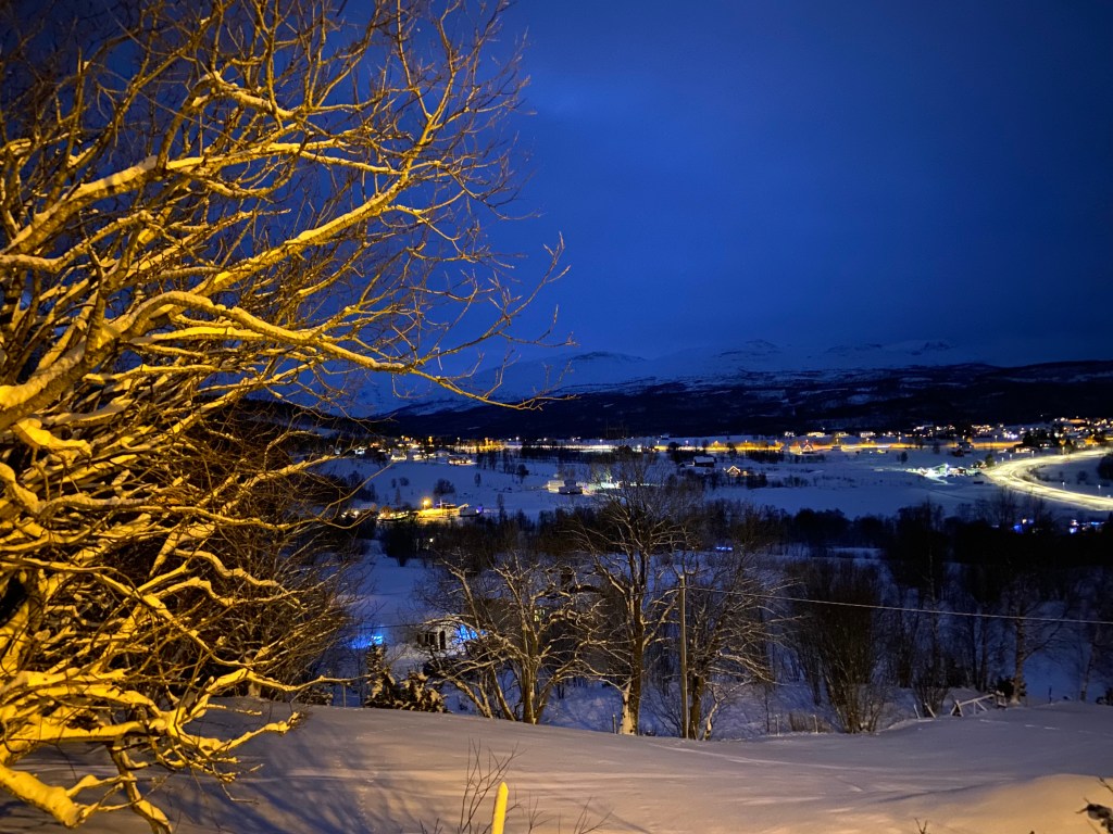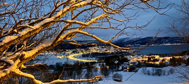 When I booked this year’s Norwegian holiday in December, it didn’t cross my mind that I would see snow in Scotland before I went. Living in Dumfries for the last two winters, I’ve not seen more than a heavyish frost, so I joyfully booked a pre-Christmas week in the Arctic to boost my chances. Not that there is invariably snow there in December, but the odds of it (and Aurora) are much greater. Perhaps I should have been prepared for it. After all, last time I went there (May last year) Donna sent pictures of spectacular northern lights over my house. Life is sometimes topsy-turvy after all.