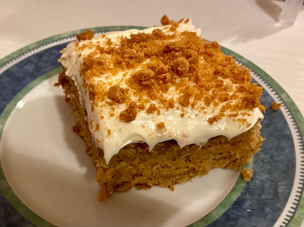 On Saturday, we made shortbread and stuffed mushrooms on a leek and cauliflower purée. No photos of those, but on Sunday, I made a gingerbread cake with cream cheese icing, which I will definitely be making again.