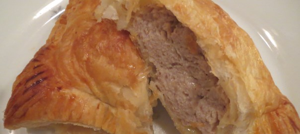 - Dampen the edges of the pasties with a little water and fold over the pastry to cover the sausage-meat, sealing the edges with a fork.
