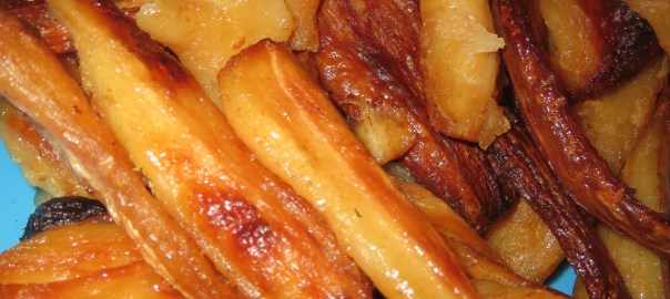 - Add the honey, mix with the fat and turn the parsnips to ensure it is distributed over all the parsnips.
