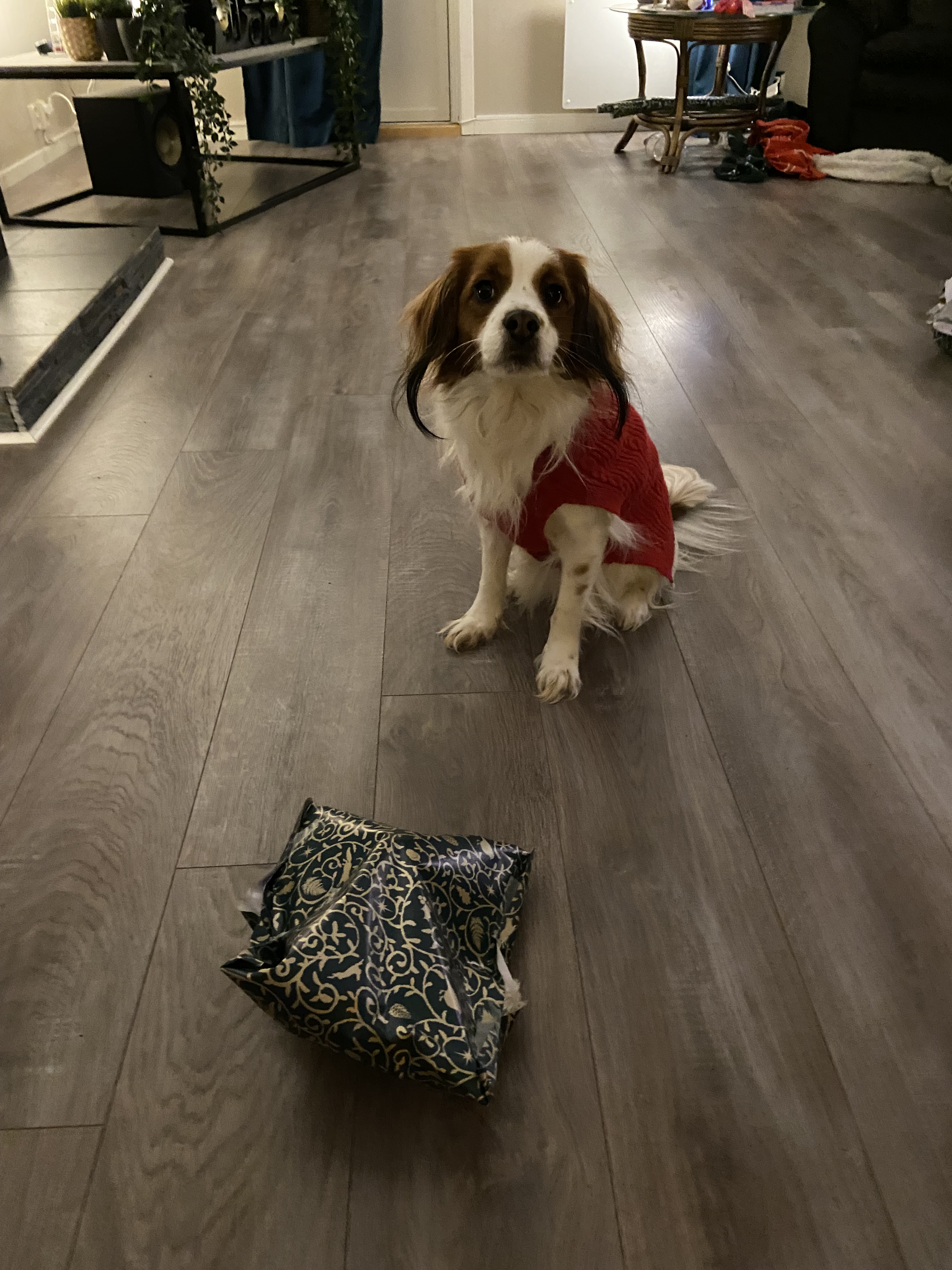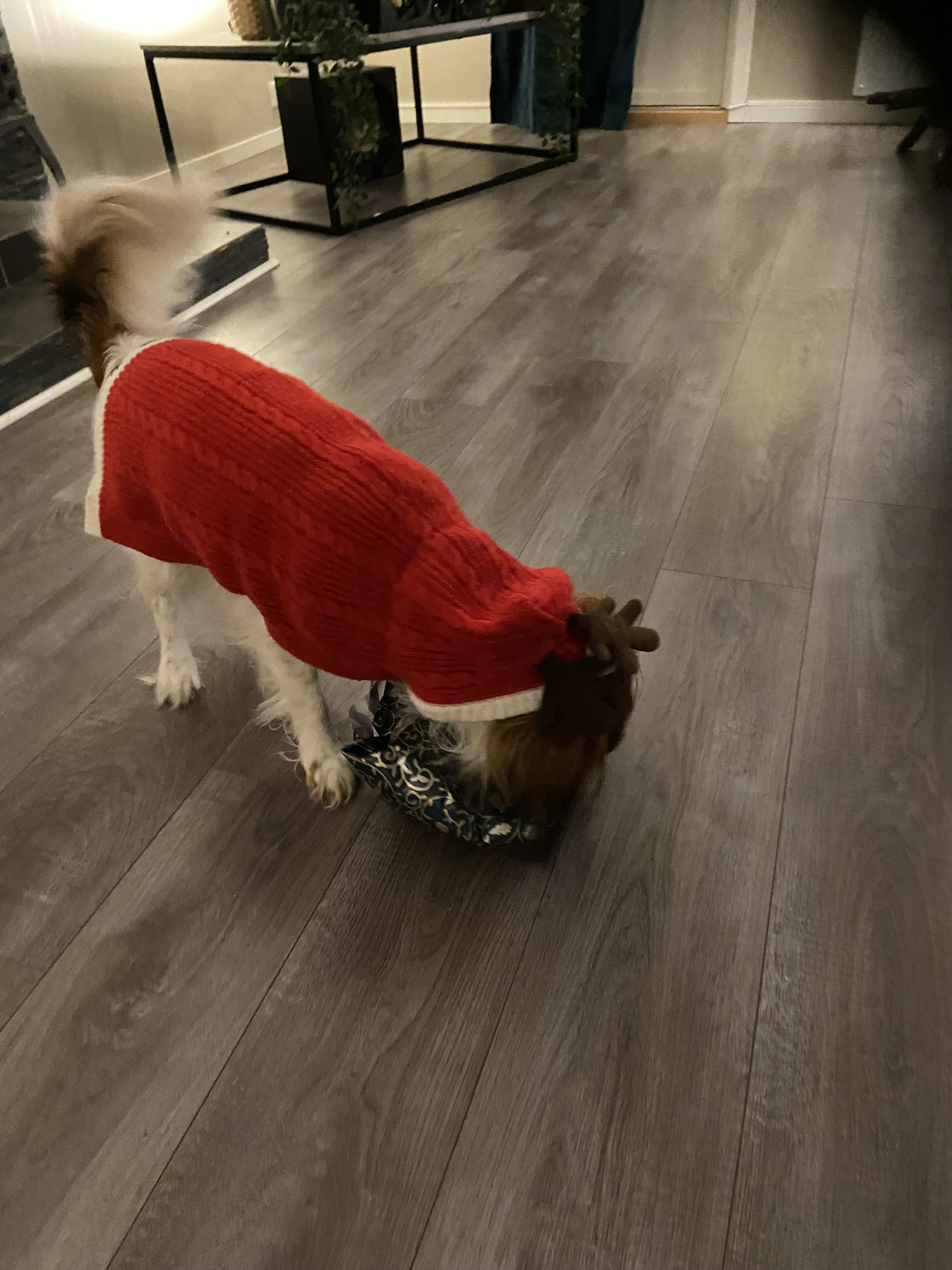 I’ll finish with some photos of Triar opening his Christmas present. It’s a new version of the same present he had last year and the year before, and by the end of 2023, I expect this one will be sufficiently chewed as to need replacing. He seems just as pleased as ever with it, which is lucky.
