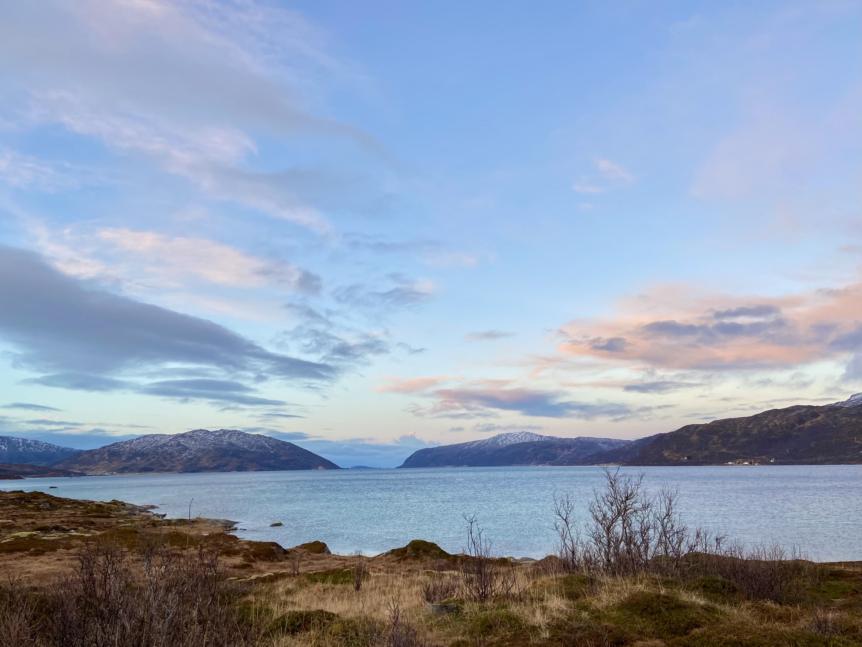 And it was fantastic to meet up with Birgit again. She had driven down from Storslett for a meeting the day before and had stayed overnight in Tromsø. She had her dogs with her and after the visit, we stopped briefly to give the dogs some fresh air. Kvaløya is beautiful. As I work in this area, I often look around me in wonder and think how lucky I am… as well as that I want to spend more leisure time exploring these different areas.