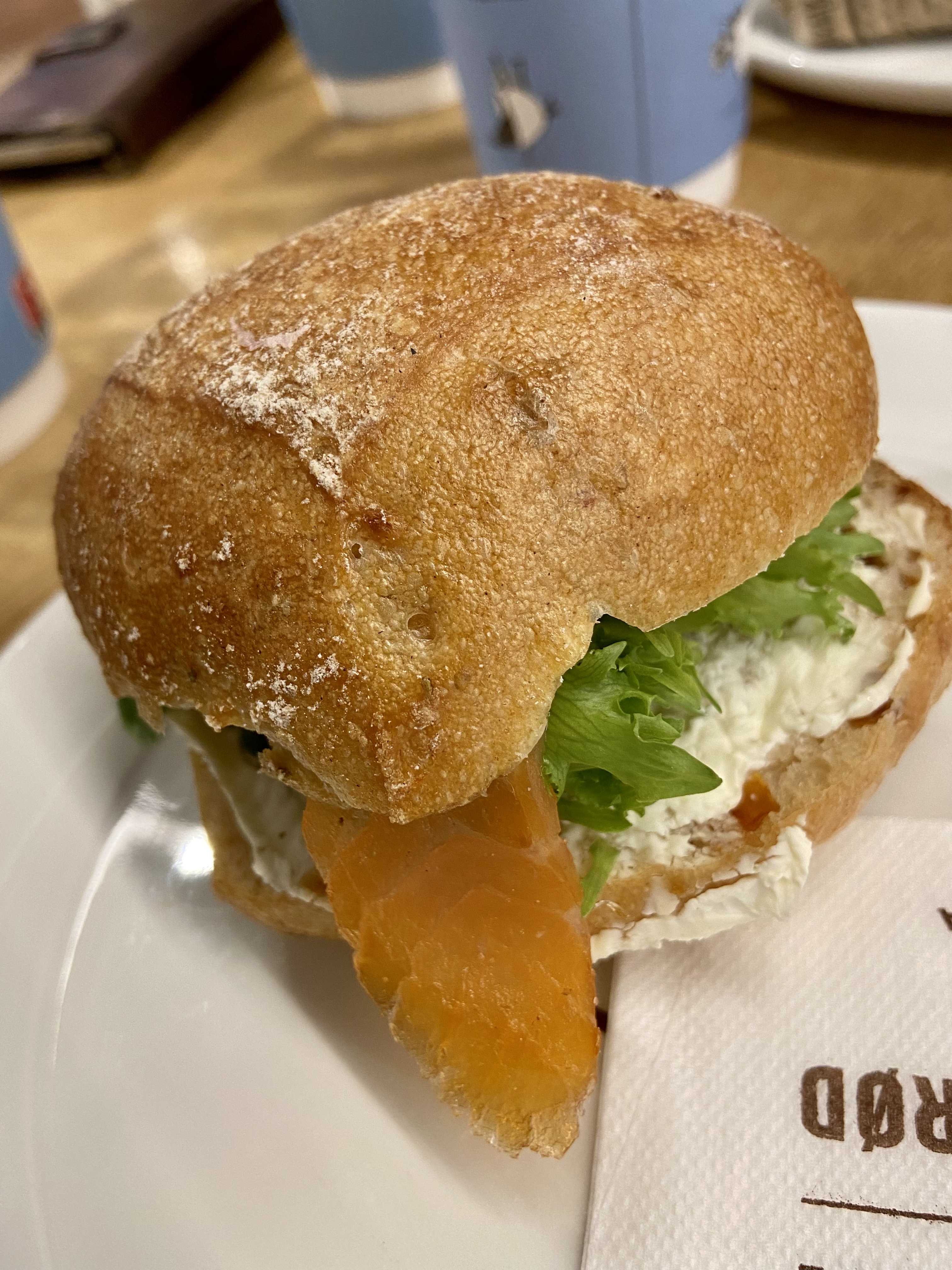 There was just time to stop for something to eat before I headed back on the boat. I ate a very tasty smoked salmon and cream cheese roll and was very pleased to see that the coffee shop were selling Senja Roasters‘ Christmas coffee. It was a good end to a very pleasant trip.