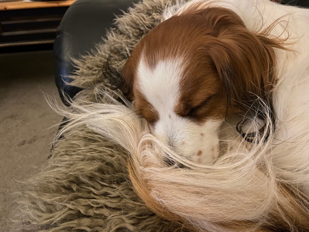 To all those who disapprove of dogs on the bed, please avert your eyes! Triar was not only on mine this morning, but IN it, as you can see. It’s not as cold now as it was in midwinter, but he’s still much better than a hot water bottle in the depths of the night.