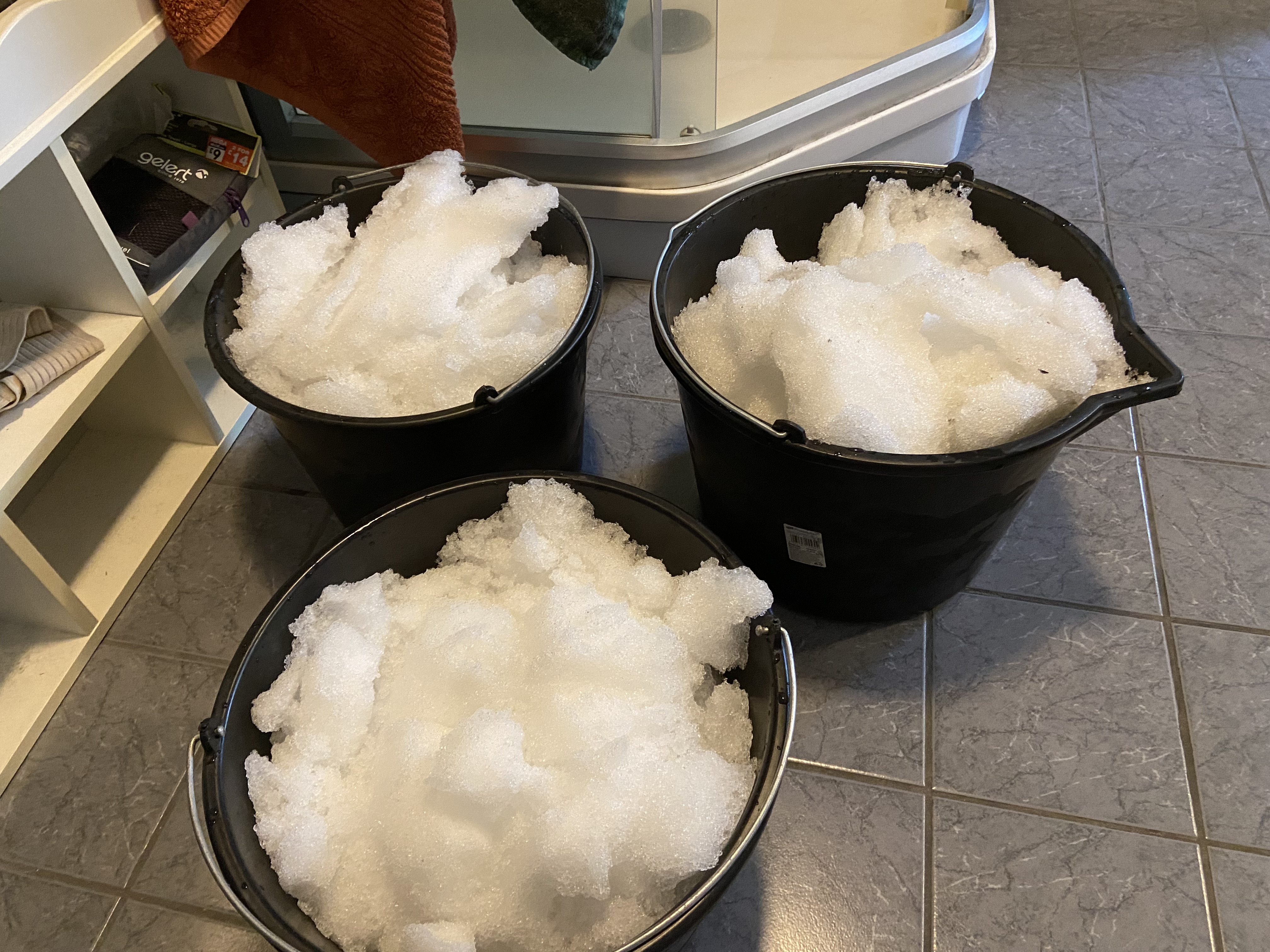 Despite the heated bathroom floor, it took a surprising amount of time for the snow to melt, but when it did, we were able to flush the toilet again, thank goodness!