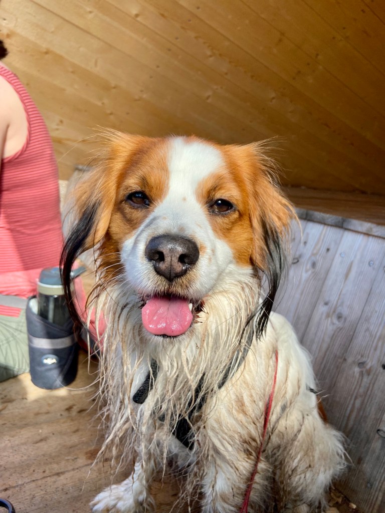 Triar found both a bog to jump in (when does he not?) and a Burned Sausage of Unknown Origin, secreted in the barbecue close to the shelter at the highest point of the circuit. Ann very quickly prised his jaws apart and rescued the sausage, which was definitely a sausage and not the more traditional hot dog. The civilised Norwegian habit of providing both a grill, and the wood to burn on it at the end of a pretty walk continues to please me. I must get into the habit of taking matches, whittling knife and food with me more often.