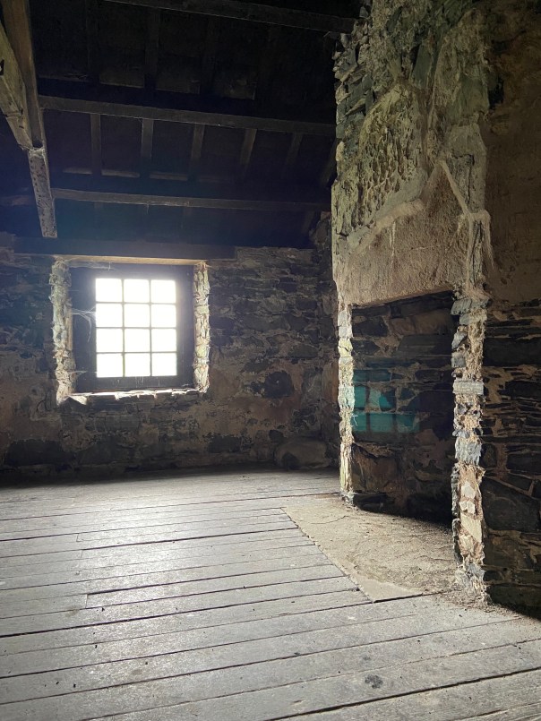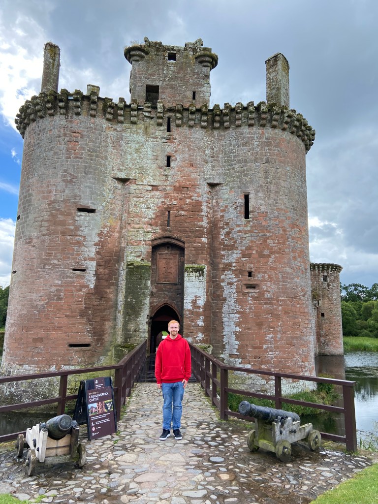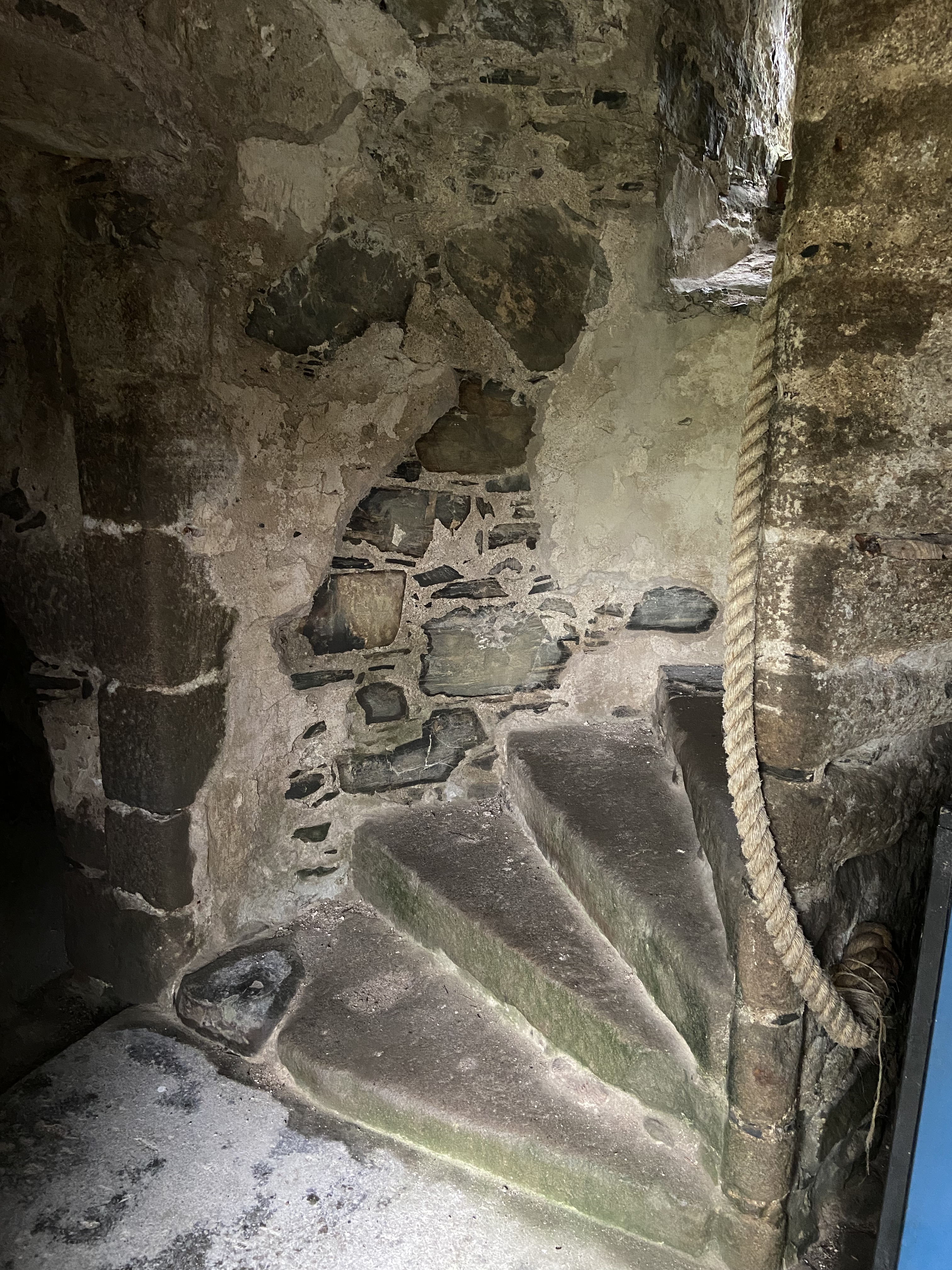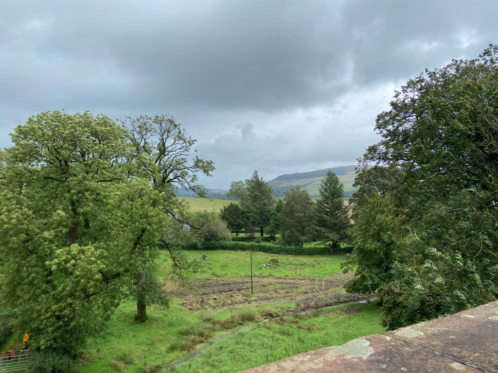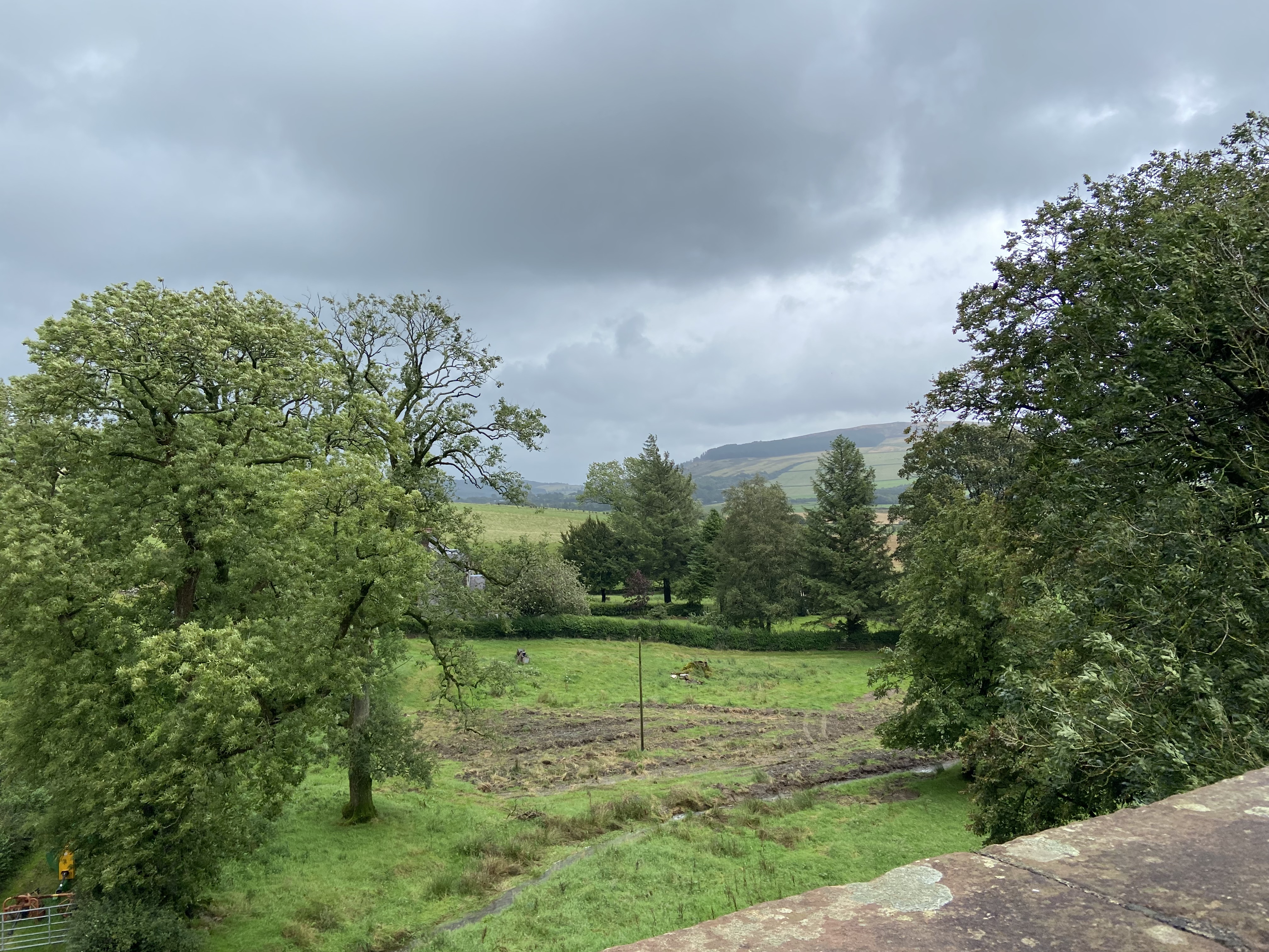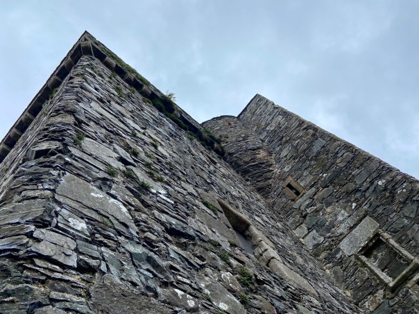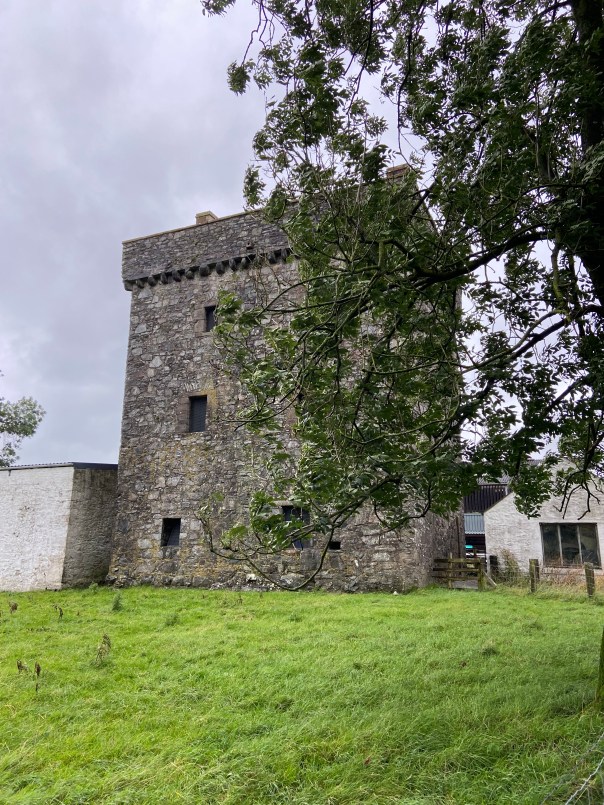 We stopped on the way home at Carsluith Castle. Like several other Historic Environment Scotland sites, it is closed to assess whether it’s safe, but there was a pleasant cafe in what would once have been its yard, where I had a very civilized cup of tea. There was also a delicatessen shop, which I will have to explore another day. It was too hot to leave Triar in the car, so he joined me outside, once I had ordered my drink.