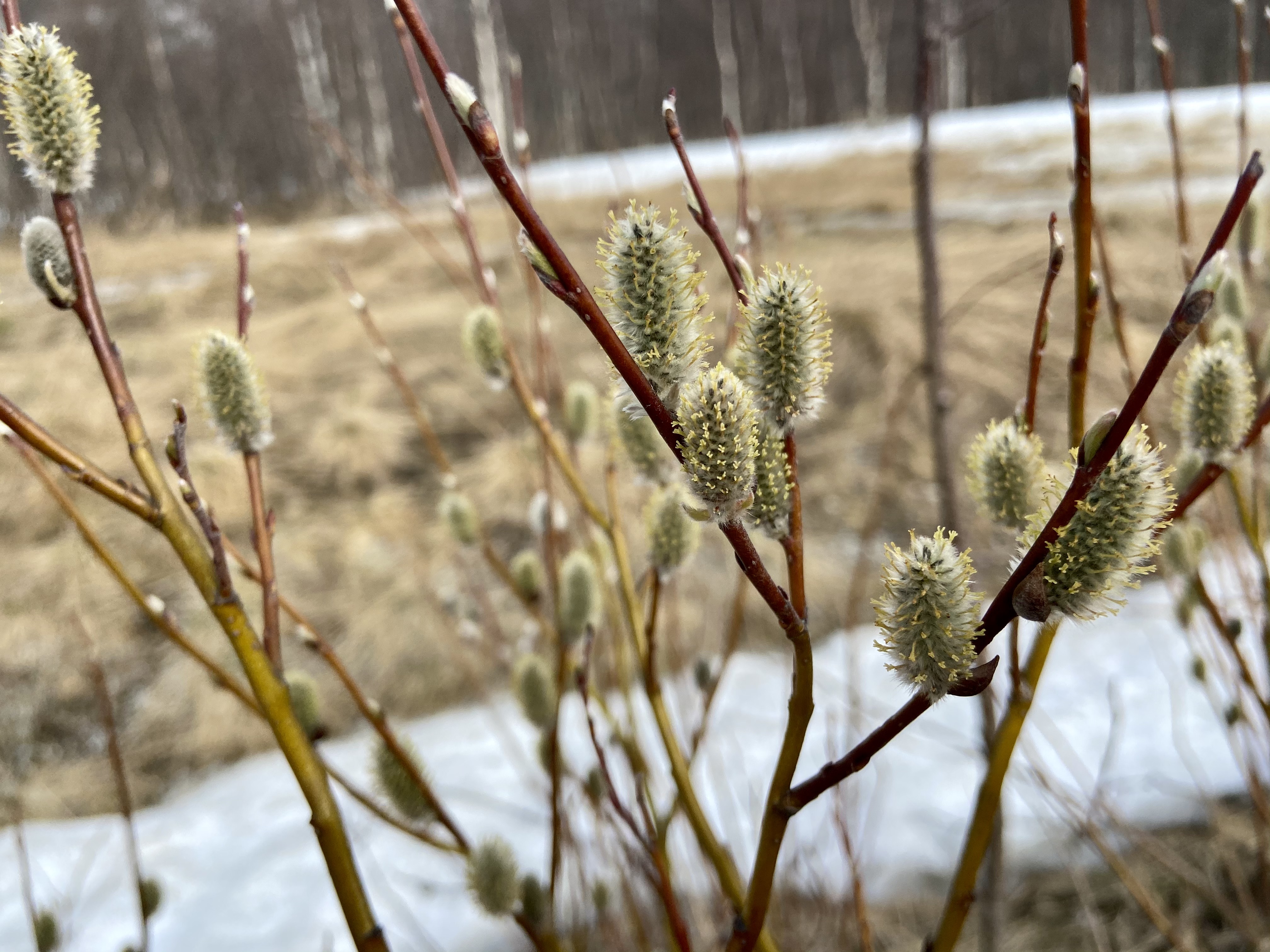 All around I hear water running where in winter there was frozen silence. Where there is a rise in the forest floor or a slope that faces the sun, there is a noticeable green tinge. Yellow flowers that look like a cross between daisies and dandelions are pushing through the dirt that has been deposited on the roadsides from five months of snow clearing.