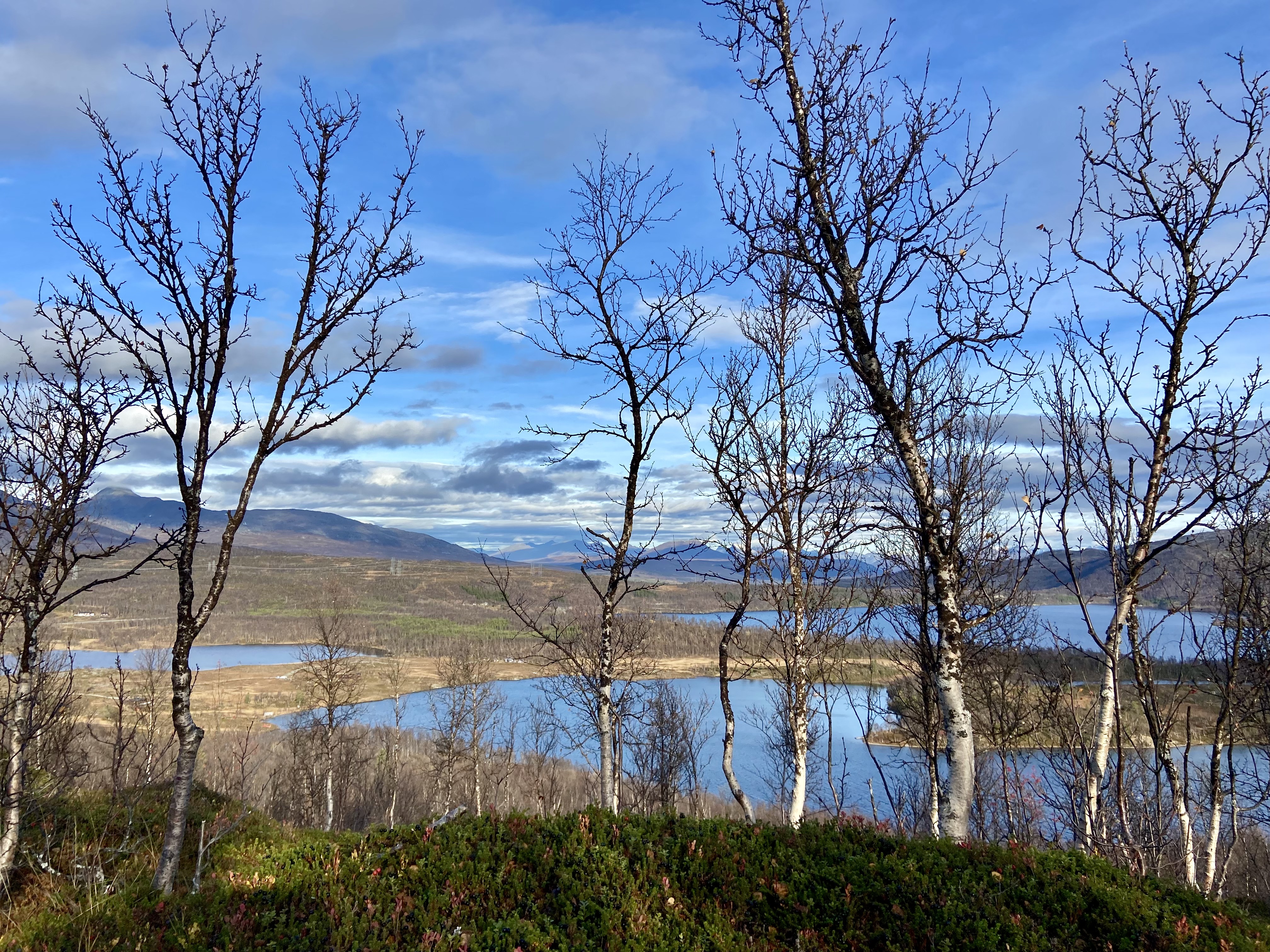 I went out walking again with Ann and Konstantin last weekend. We went up Falkefjellet. The peak we reached, though not the highest point, was above the treeline, which meant there was a good view all round.