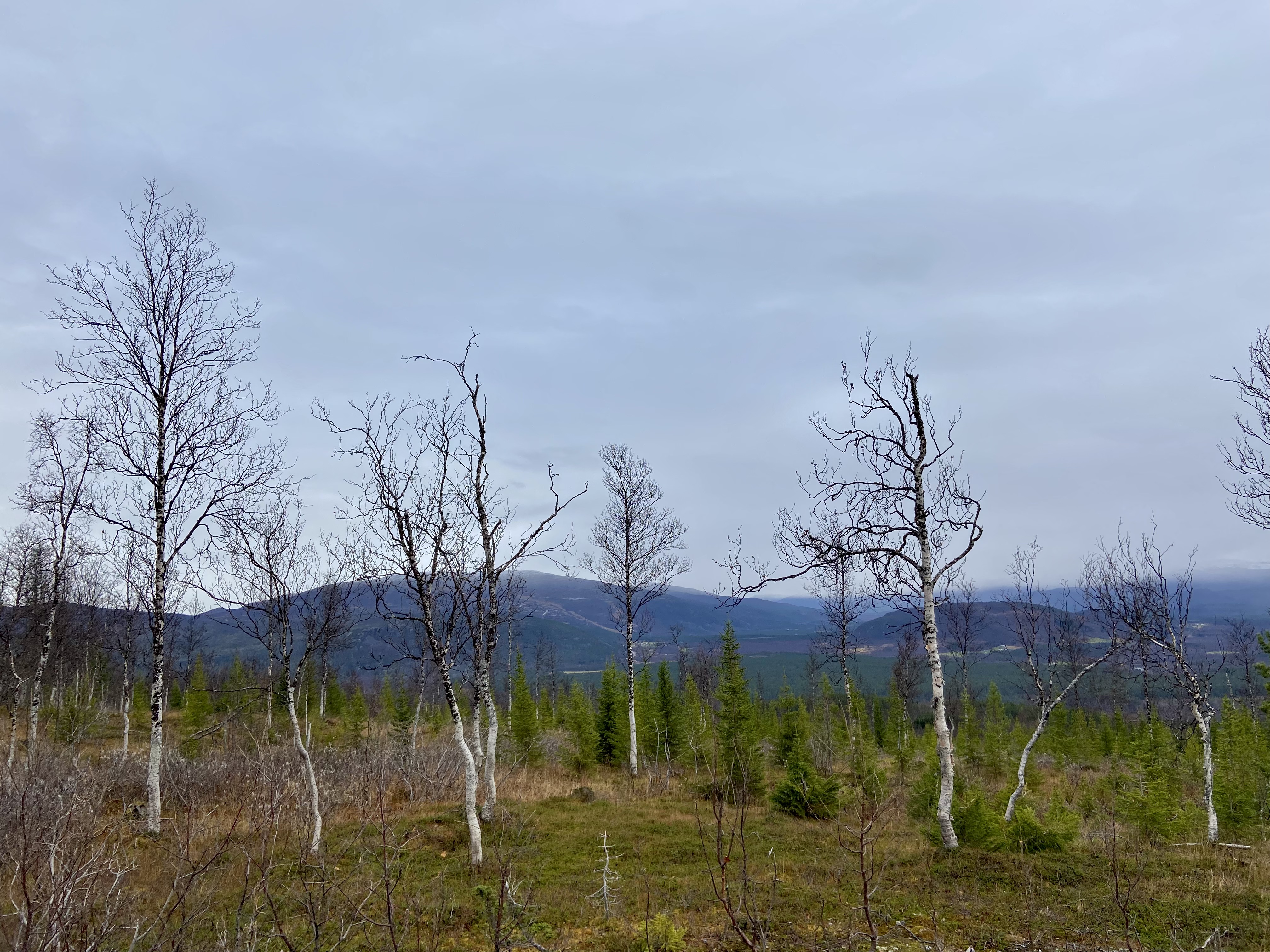 I’m going to start with a couple of photos this week. I need to find a way to stop myself huddling inside through the winters here. Having just lived through my second, I have come out the other side hopelessly unfit again. Still, I have made a start, and Triar and I took our first outing up the track that leads to Kistafjellet, which I discovered at the end of autumn last year: Changing Wheels, Changing Weather