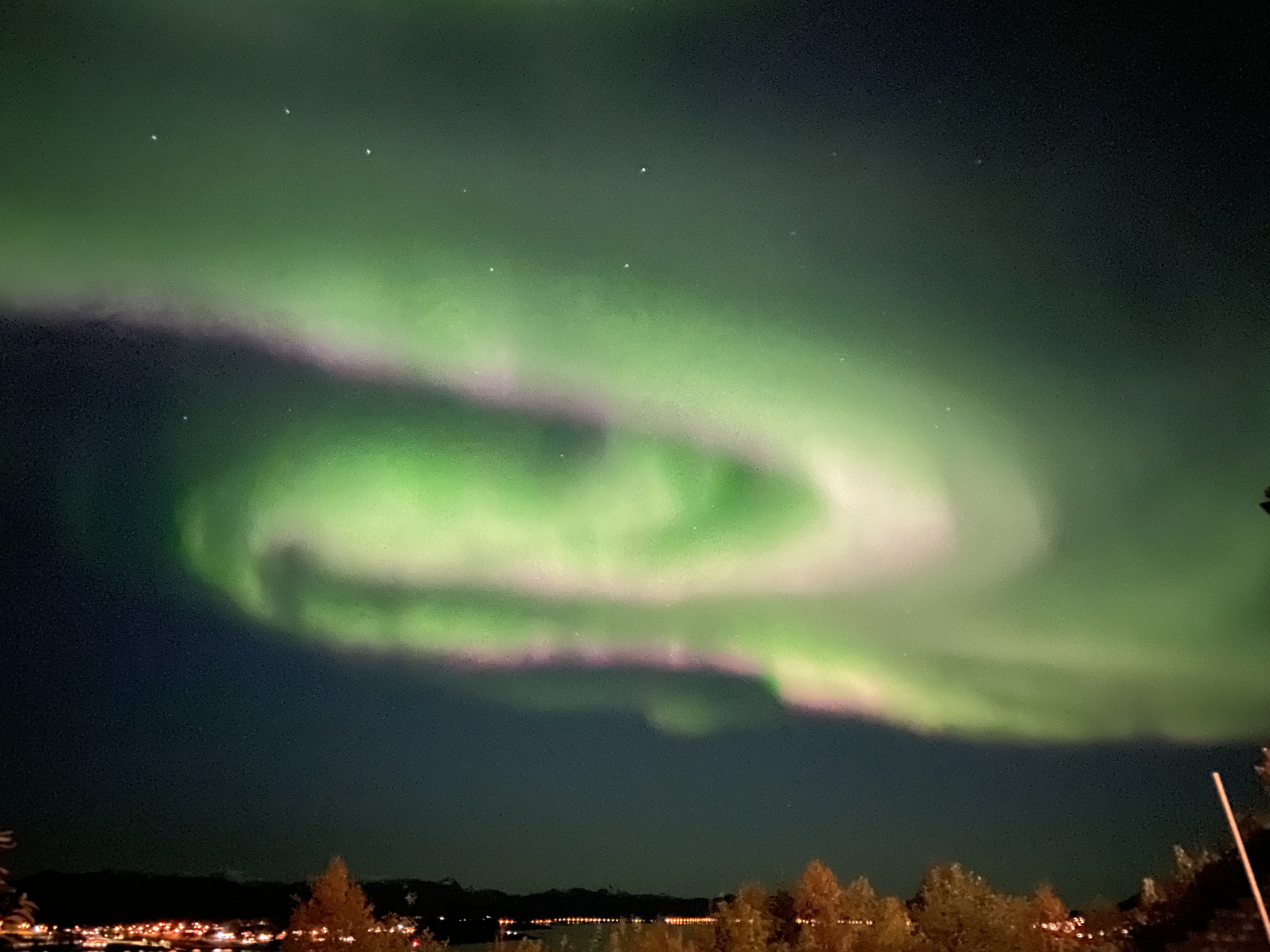 The plane arrived on time and as we arrived back at the house, Andrew pointed at the sky. There they were, the northern lights, greeting him on his return to the north.