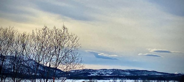 When I booked this year’s Norwegian holiday in December, it didn’t cross my mind that I would see snow in Scotland before I went. Living in Dumfries for the last two winters, I’ve not seen more than a heavyish frost, so I joyfully booked a pre-Christmas week in the Arctic to boost my chances. Not that there is invariably snow there in December, but the odds of it (and Aurora) are much greater. Perhaps I should have been prepared for it. After all, last time I went there (May last year) Donna sent pictures of spectacular northern lights over my house. Life is sometimes topsy-turvy after all.