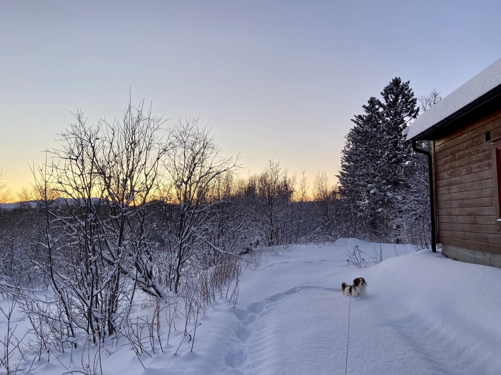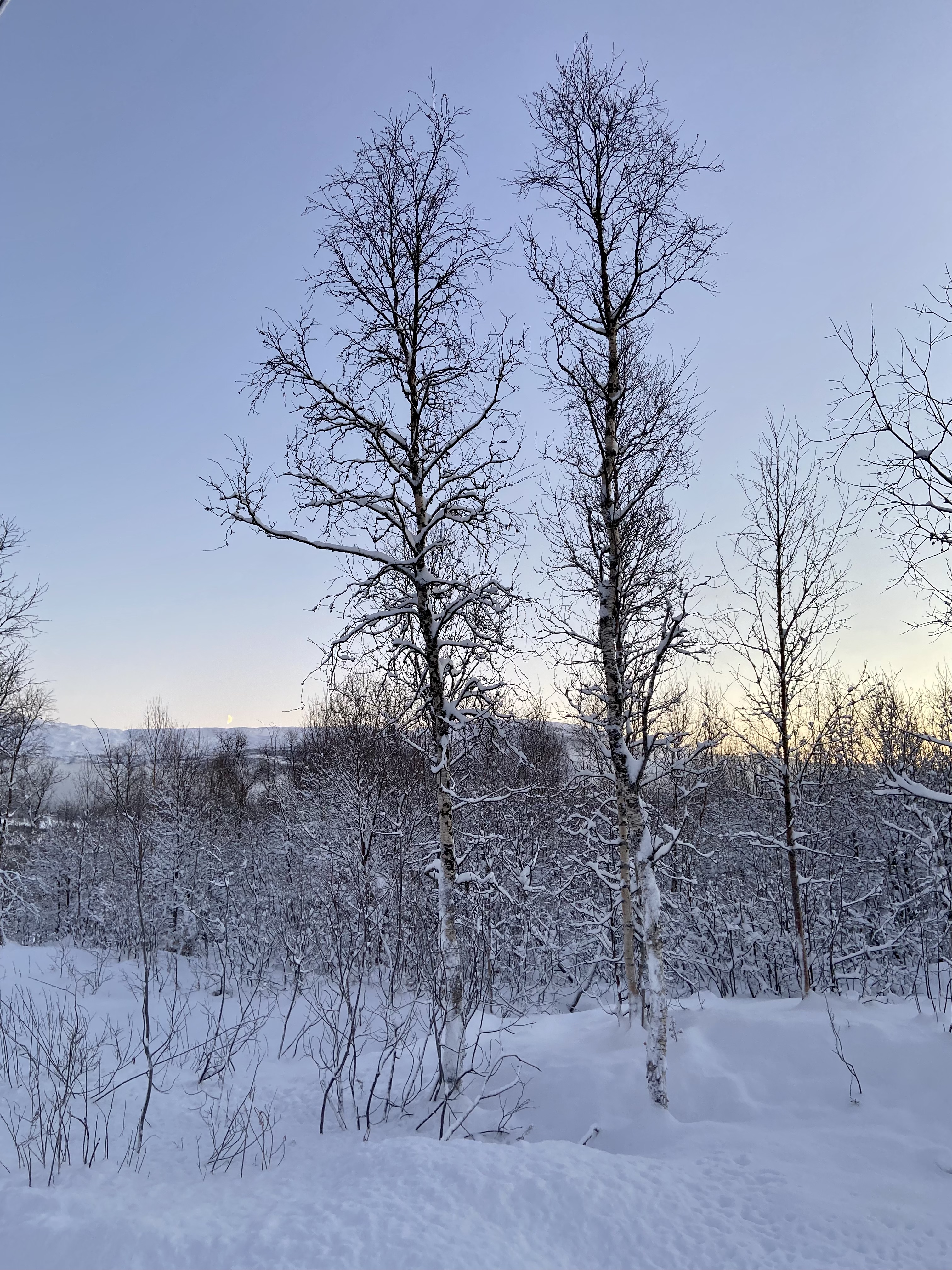 I don’t think the feeling of joy this gives can be understood until you’ve lived somewhere where there is a significant period when the sun doesn’t come over the horizon at all. Long cloudy spells, even in the south of Norway, were not the same. I had a visceral feeling of joy at this moment. When the sun isn’t out, the light here is still super blue. I will add some other photos later, taken on a couple of different days this week, and you will see what I mean.