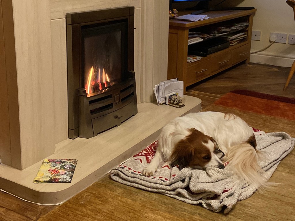 The storm came last Sunday, as forecast. It wailed around the thick walls of my snug little house and wuthered in the chimney. Despite having no doors on the rooms upstairs, my living room stayed warm and cosy. I grew up in houses where the central heating was in minimal use and one room was kept warm with a fire, so it was nothing new. With Triar snuggling on his sheepskin rug beside me, we weathered the storm in comfort.