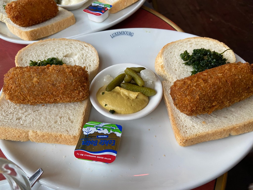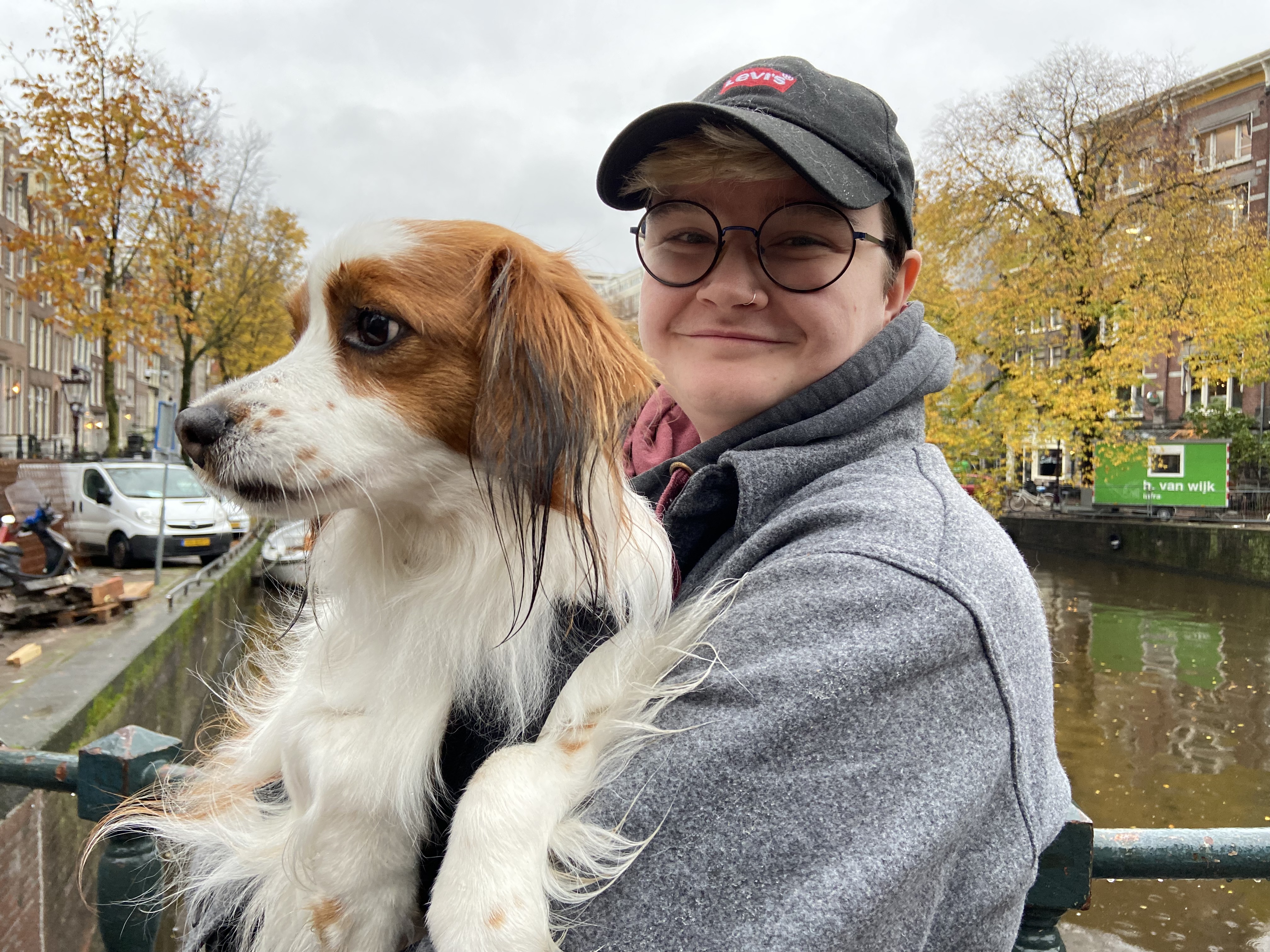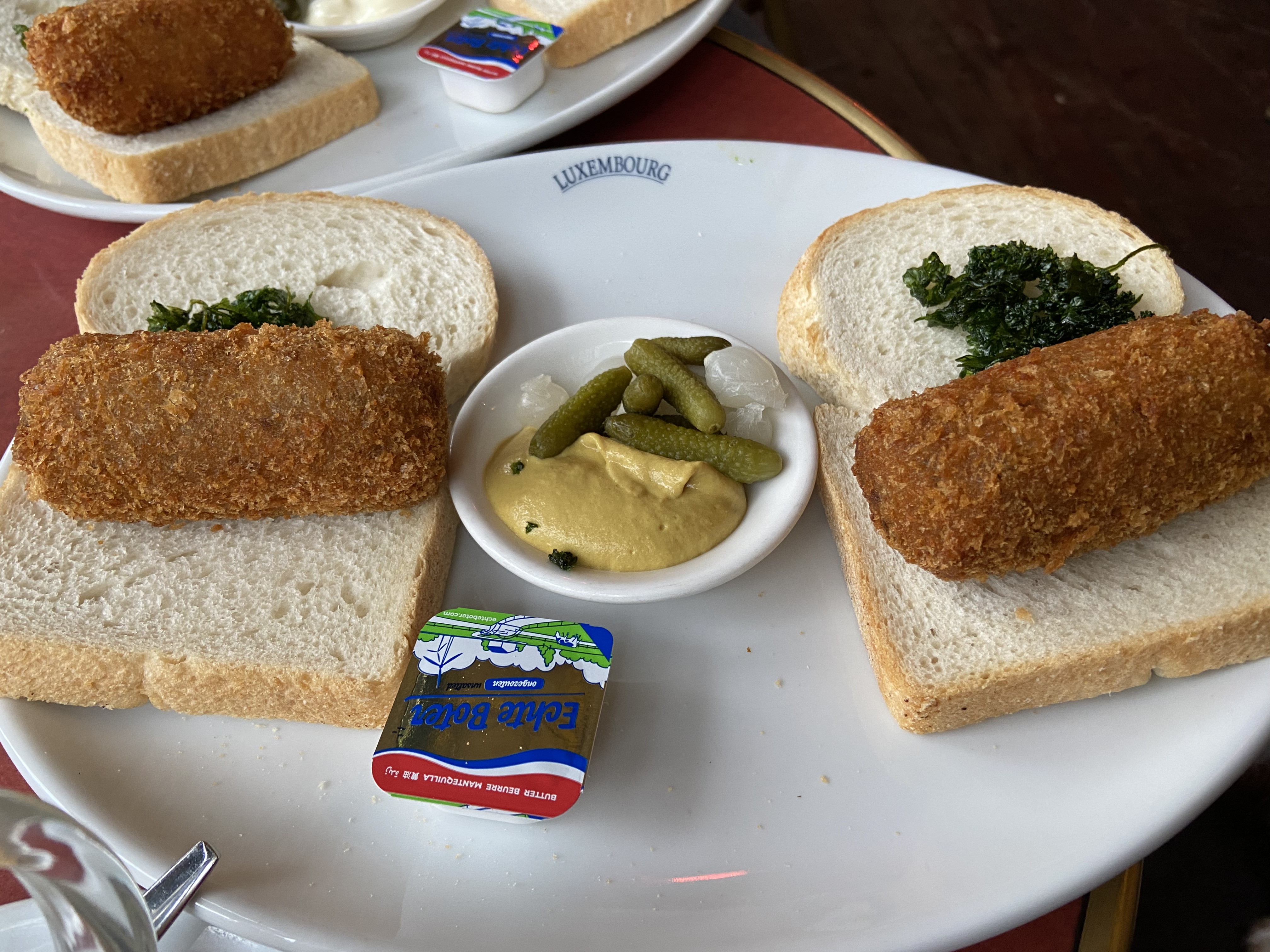 We spent yesterday walking around Amsterdam in the rain, stopping in a cafe to eat some traditional Dutch kroketter. I asked the restaurant owner if we could bring a dog in and he smiled and said that if it was a cute cuddly dog, it was welcome to come in.