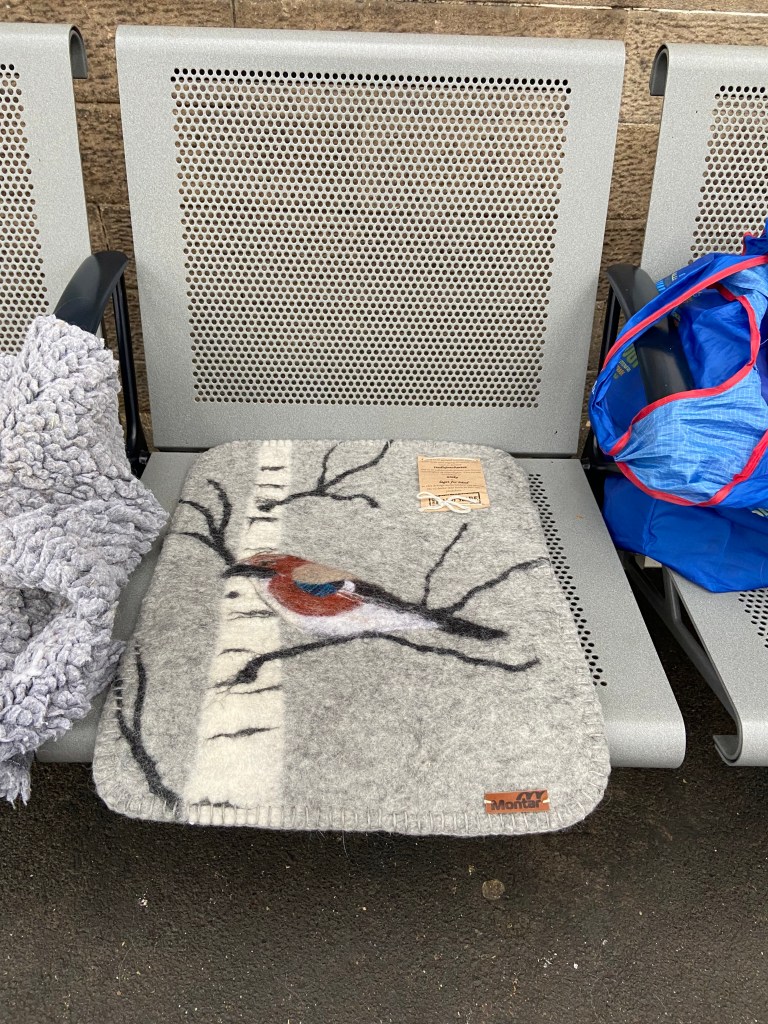 I had been concerned about coming through customs with a dog to declare when we arrived the following morning, but in the event, after a quick passport check, we were waved on through. A short bus ride into Newcastle took us to the station and before long, we were on the last leg of our journey. We had a rather chilly stop on Carlisle station, but I got to use the lovely sitting mat I received from my friends and colleagues at the abattoir for the first time. I can confirm that it works well!