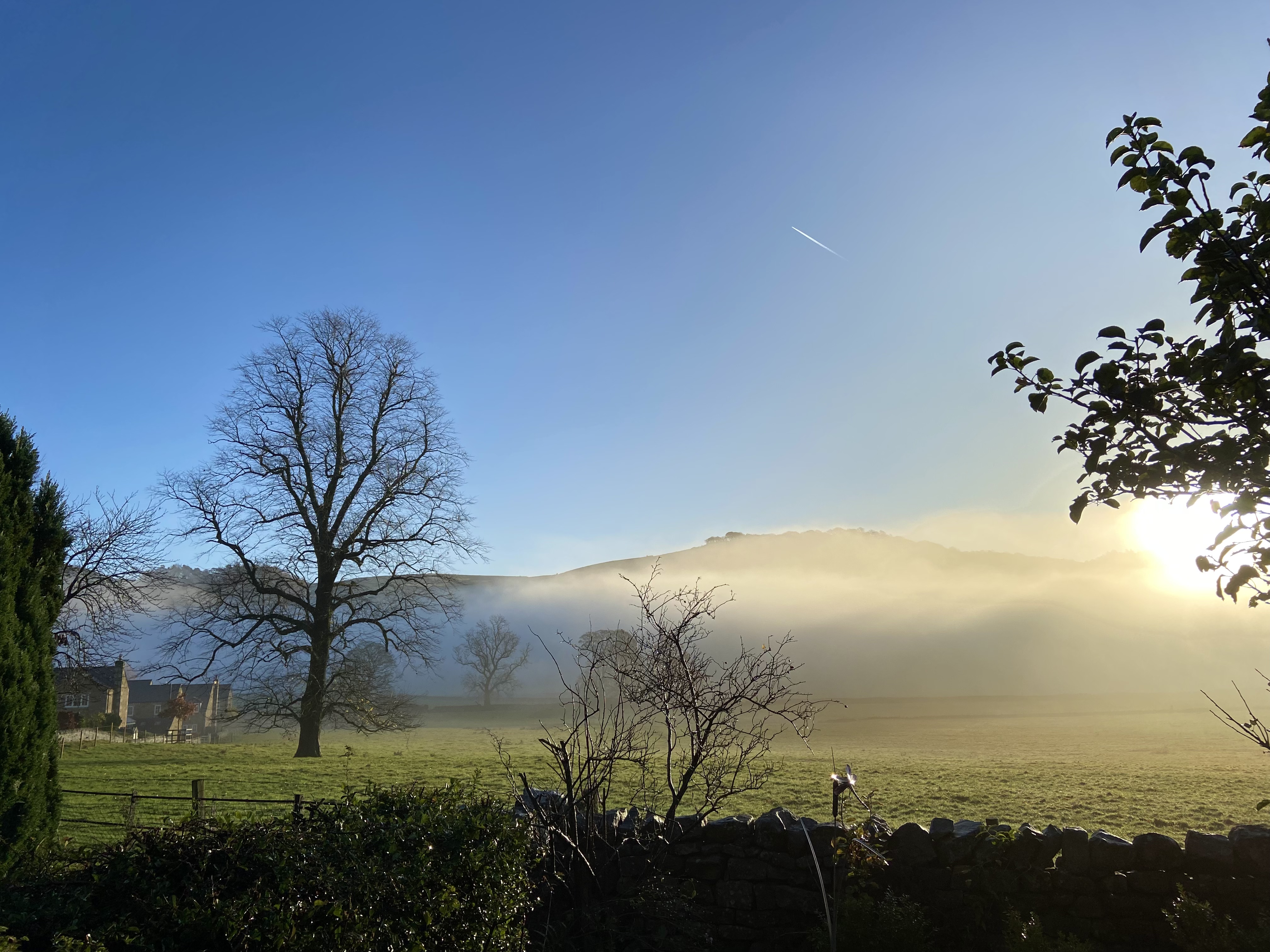 Mist hung above the fields, but the light was beautiful, catching the wonderful clarity of the raindrops, left there by a shower.