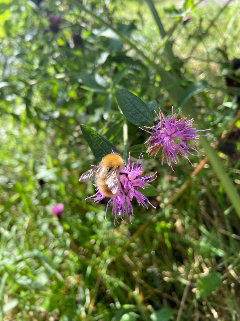A multitude of dragonflies flitted across the path at the beginning and later, there were brambles, filled with fruit. This little guy caught my ear with its drowsy summer buzz, so I took its photo, then carried on.