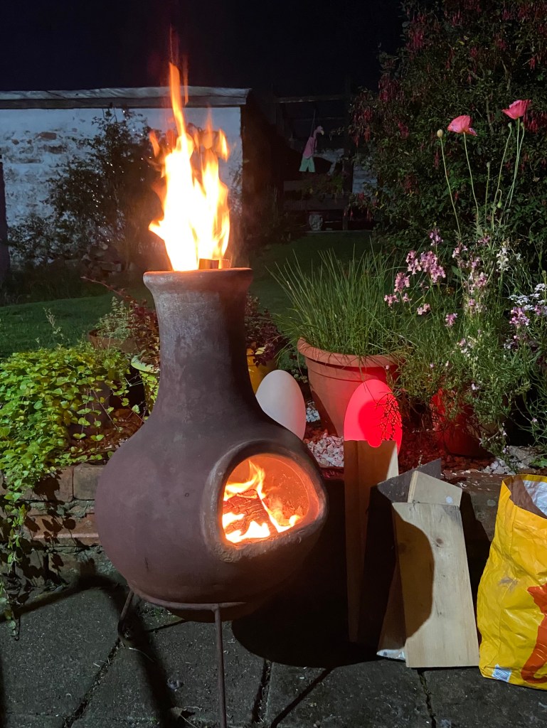 A little later, I received a text from Donna, which said “If you’re home and at a loose end there’s a bottle of wine open and the chiminea is on. Making the most of the only day of summer 😂”. Well who could resist an offer like that? I decided on tea, instead of wine, but sat in Donna’s garden until the sun had gone down and it was properly dusk.