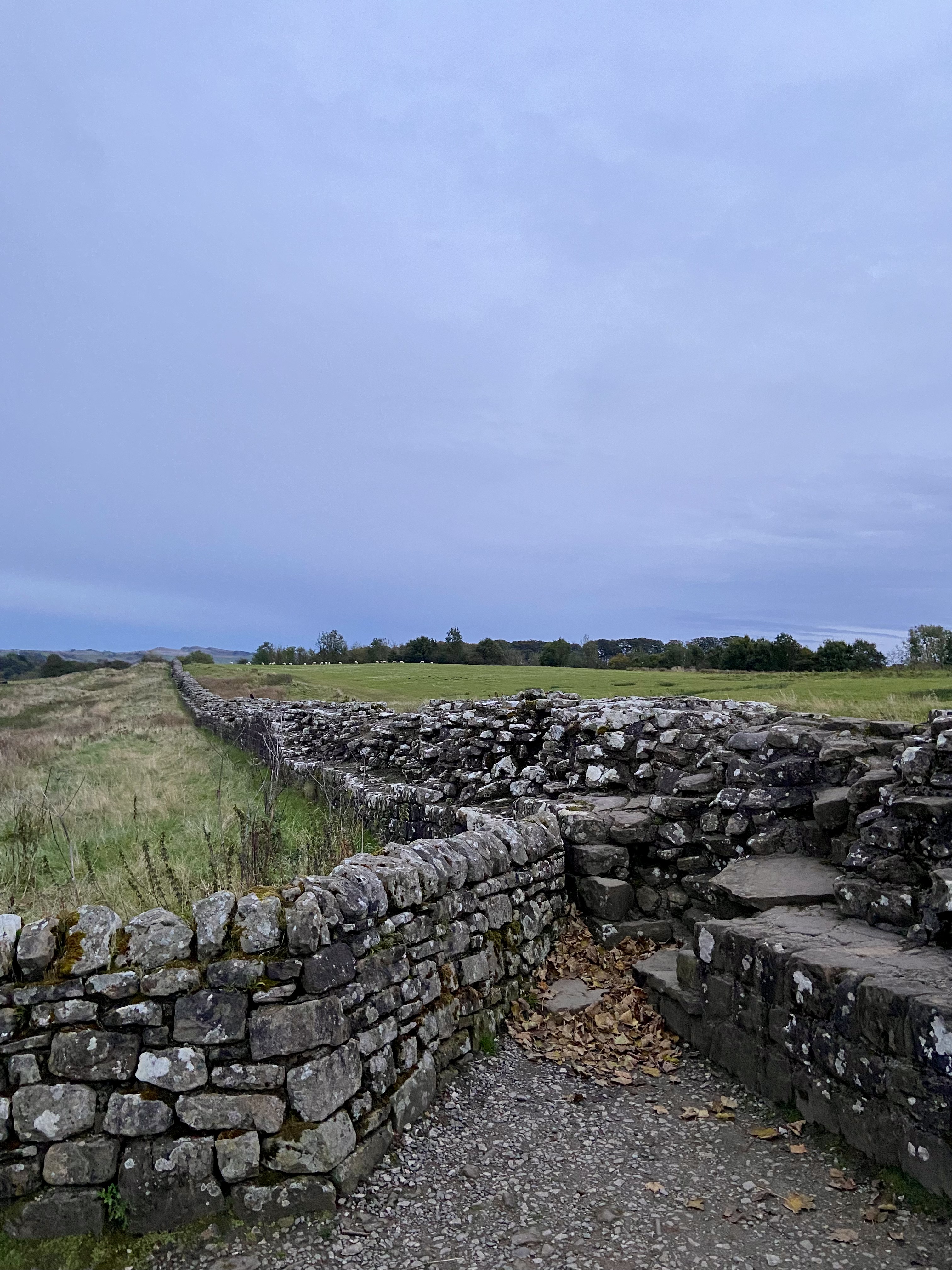 Last Sunday, I met an old friend from university and had a meal with him in Lockerbie. We then decided to go and look at a section of the west side of Hadrian’s wall, as it wasn’t too far away. It’s an impressive sight, even now: well constructed and taller than I am, so I couldn’t see over it. It was originally four metres high when it was built almost 2000 years ago. It must have been very commanding and Hadrian must have been very alarmed by all the evil Scots!