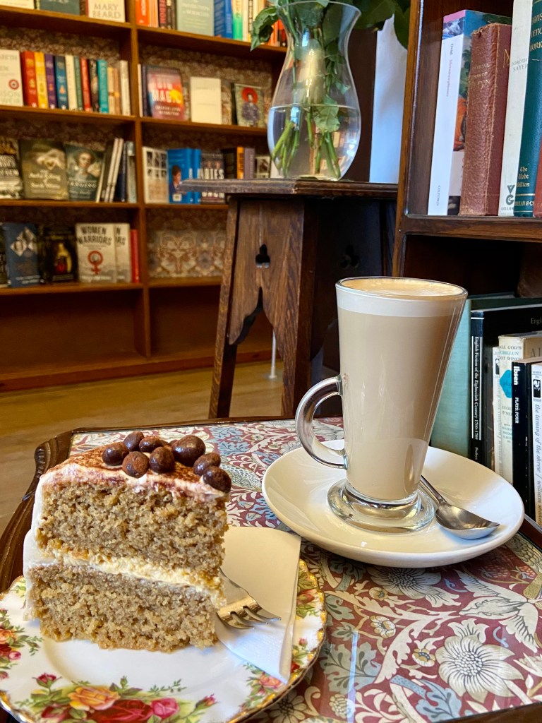 The high point of my week was on Tuesday, when I visited a vet practice for a routine inspection over Wigtown way. It went well and I decided to spend lunchtime in a cafe in Wigtown called ReadingLasses. They had run out of soup and were only serving coffee and cake, so I chose a coffee and martini cake, which really was as delicious as it looks. Wigtown is also Scotland’s book town, as I’ve mentioned before, and as you can see in the photo below, and maybe guessed from its name, ReadingLasses was filled with books by and about women. I read the first two chapters of a book about crofting life with my cake and will definitely return for the following two next time I’m over that way.