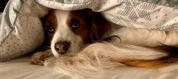 To all those who disapprove of dogs on the bed, please avert your eyes! Triar was not only on mine this morning, but IN it, as you can see. It’s not as cold now as it was in midwinter, but he’s still much better than a hot water bottle in the depths of the night.